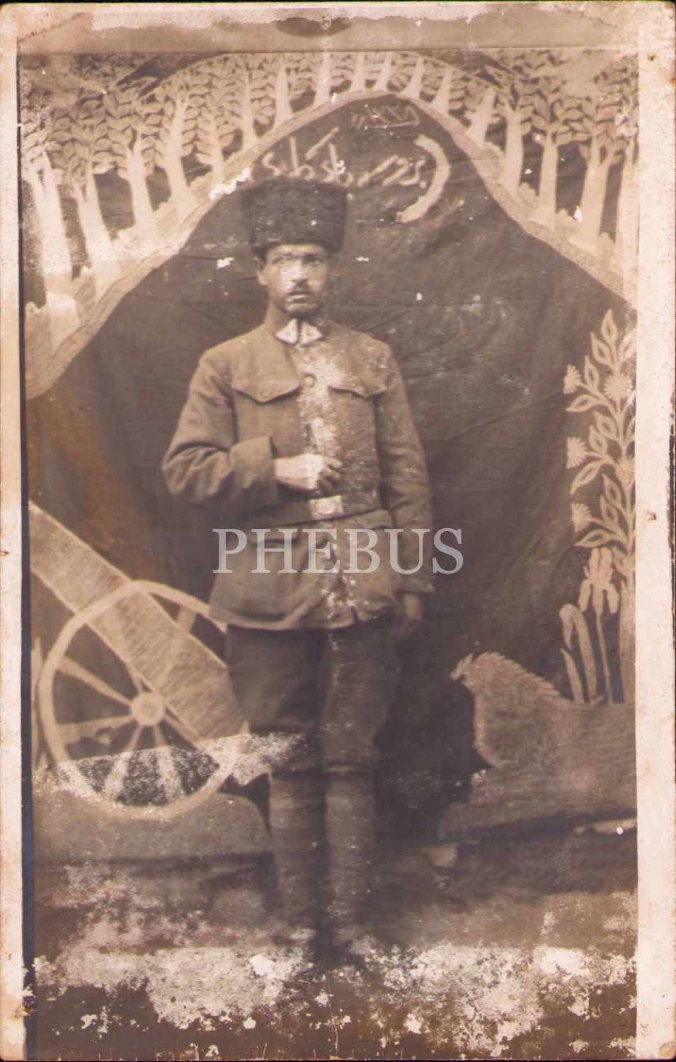 Osmanlıca Bursa Yadigârı perdesi önünde asker, yorgun haliyle