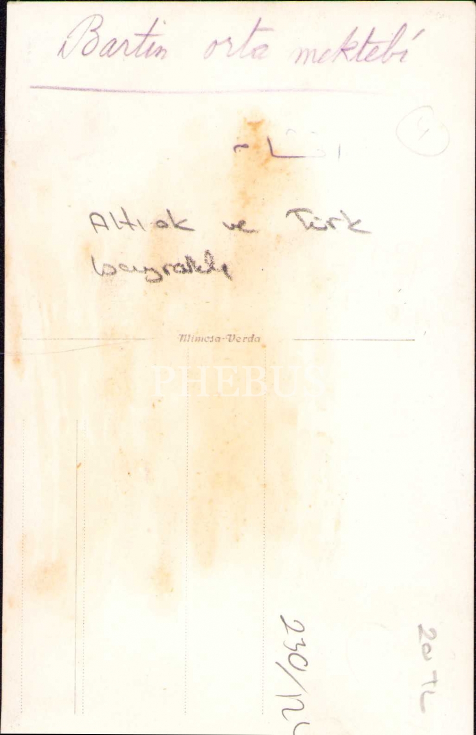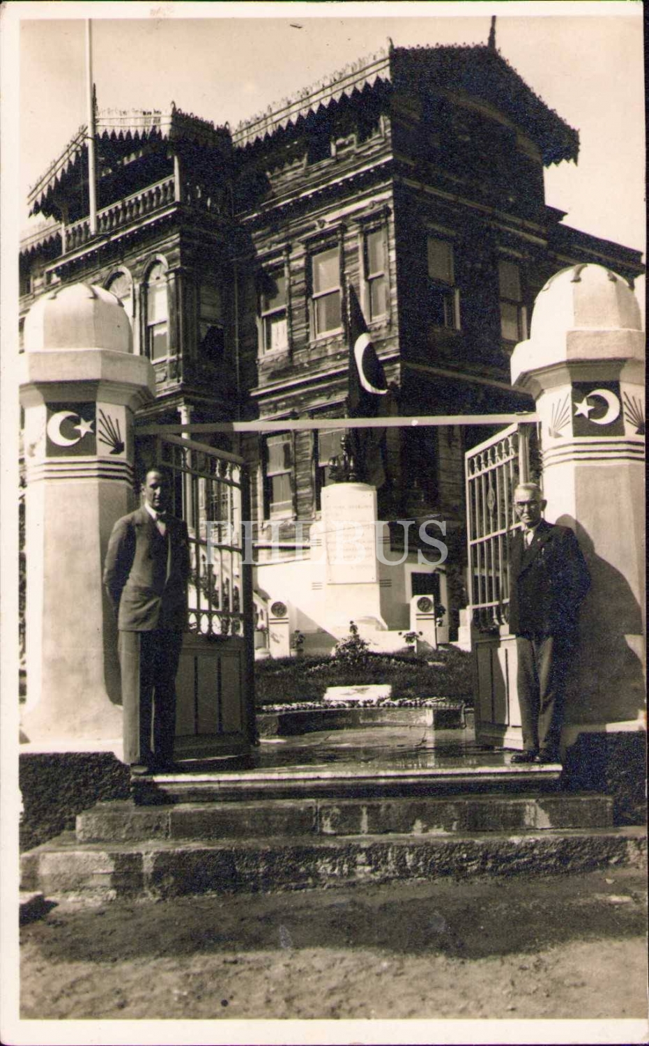 Altı ok ve Türk Bayraklı bina girişinde hatıra fotoğrafı