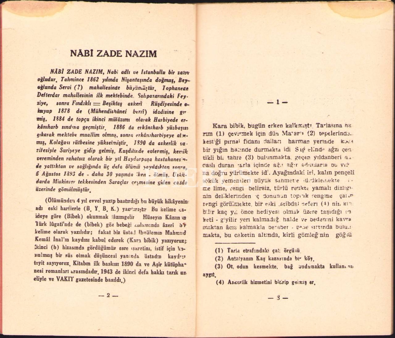 Karabibik, Nâbizâde Nâzım, Vakıf Matbaası, İstanbul 1944, 40 s., 13x19 cm, yıpranmış haliyle