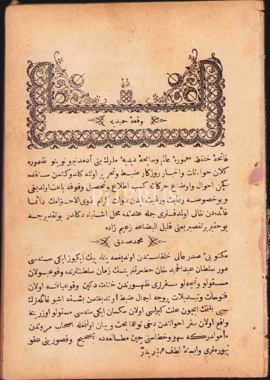 Osmanlıca Vak'a-i Hamîdiyye, Basiret Matbaası, 1289, 125 s., 13x19 cm, ciltsiz haliyle