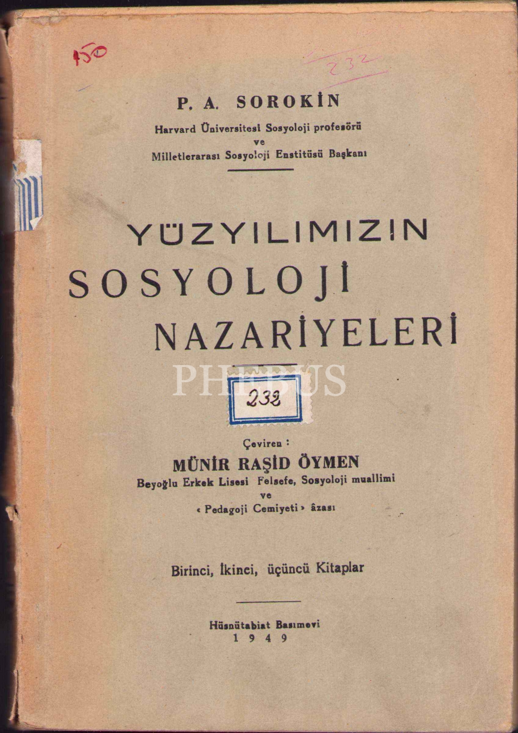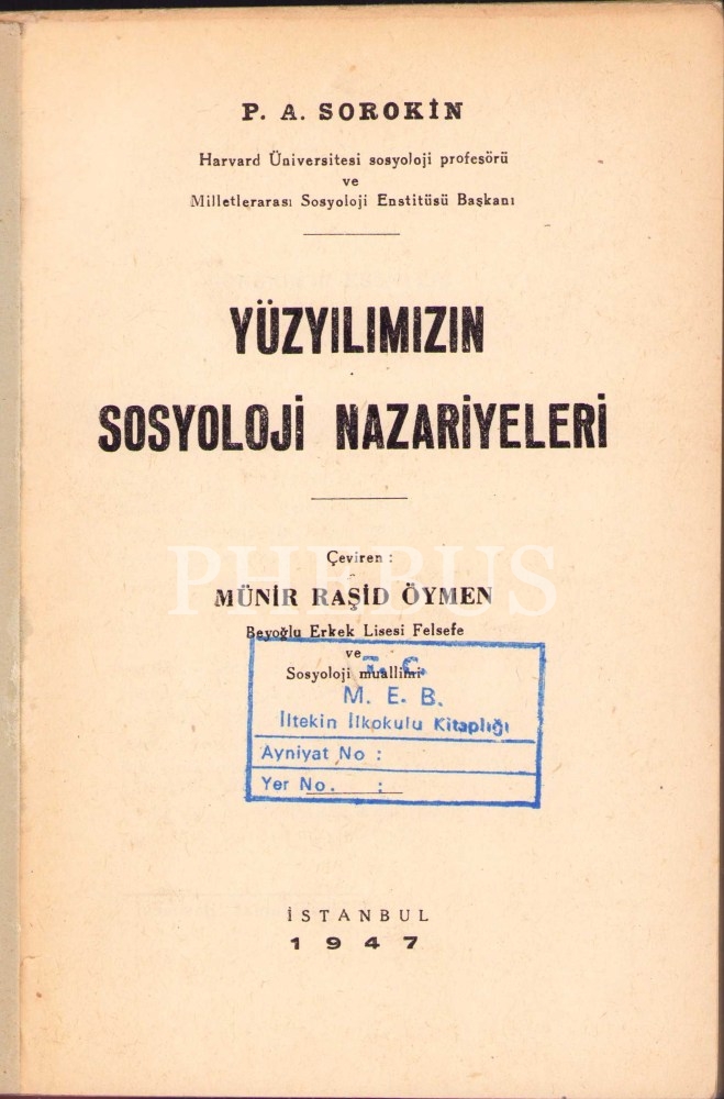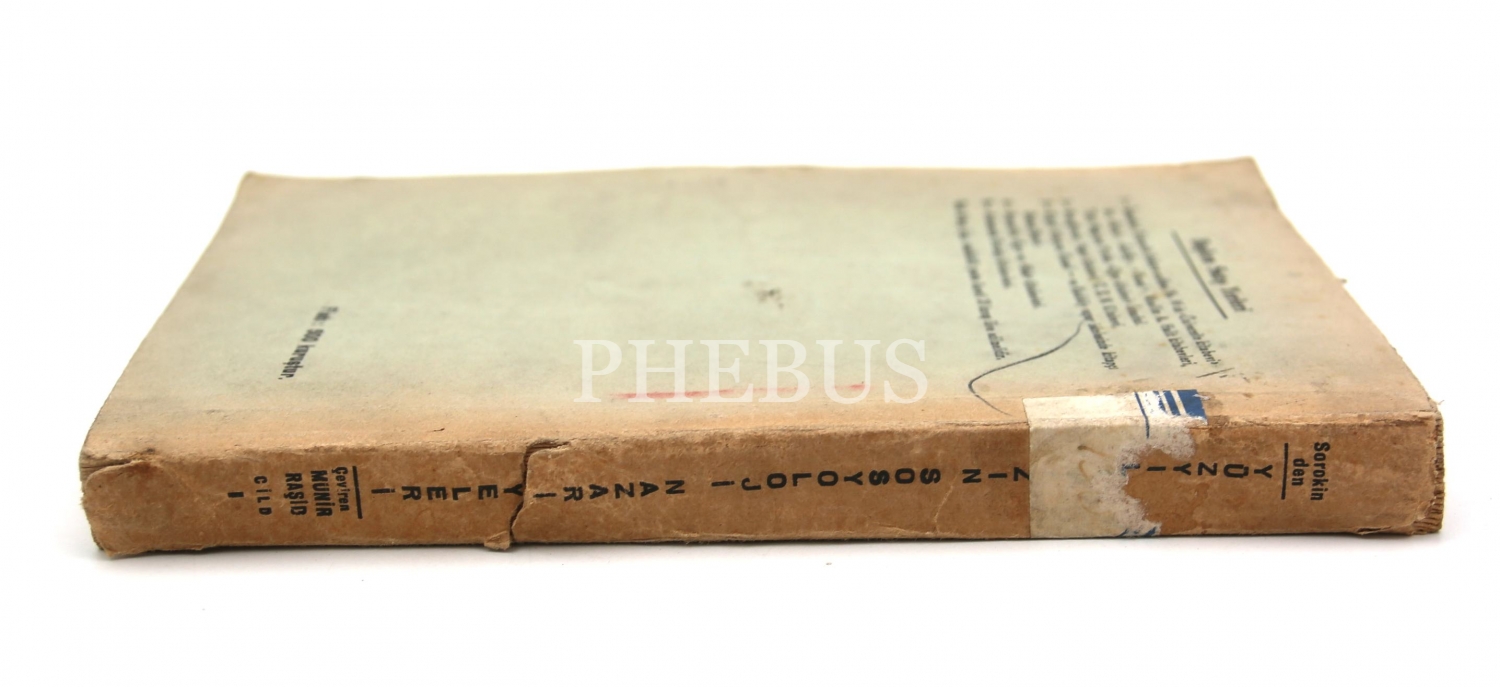 Yüzyılımızın Sosyoloji Nazariyeleri, P.A. Sorokin, çev. Münir Raşid Öymen, Hüsnütabiat Basımevi, İstanbul 1949, 14x20 cm, sayfaları açılmamış haliyle
