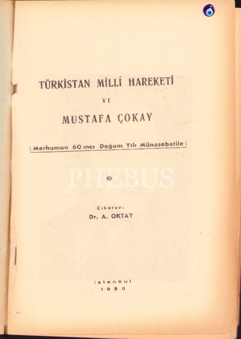 Türkistan Milli Hareketi ve Mustafa Çokay, A. Oktay, İstanbul 1950, 55 s., 16x24 cm