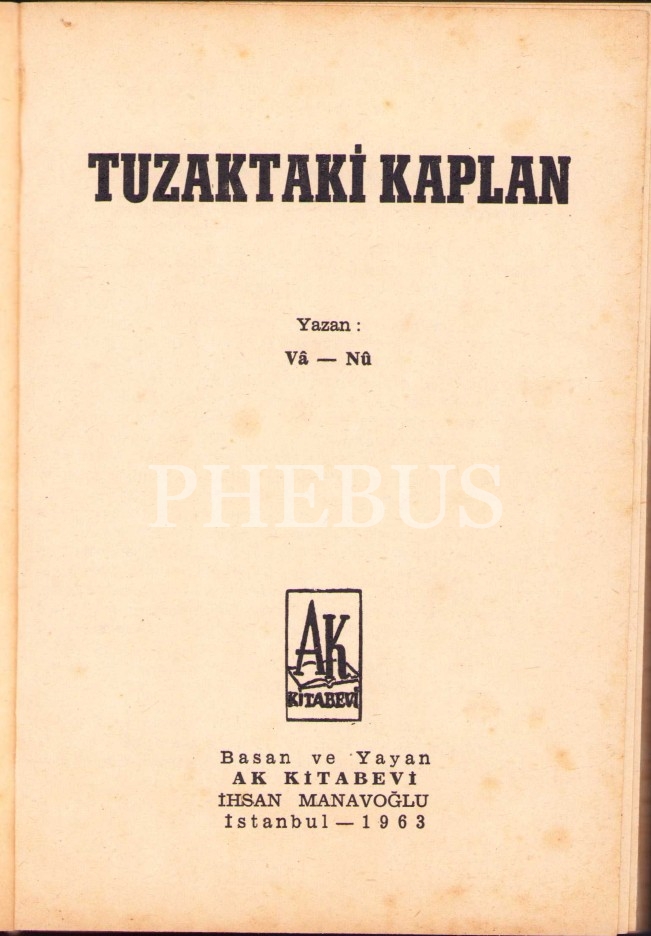 Tuzaktaki Kaplan (Polis Romanı), Vâ-Nû, Ak Kitabevi, İstanbul 1963, 224 s., 12x18 cm, cildi yıpranmış haliyle