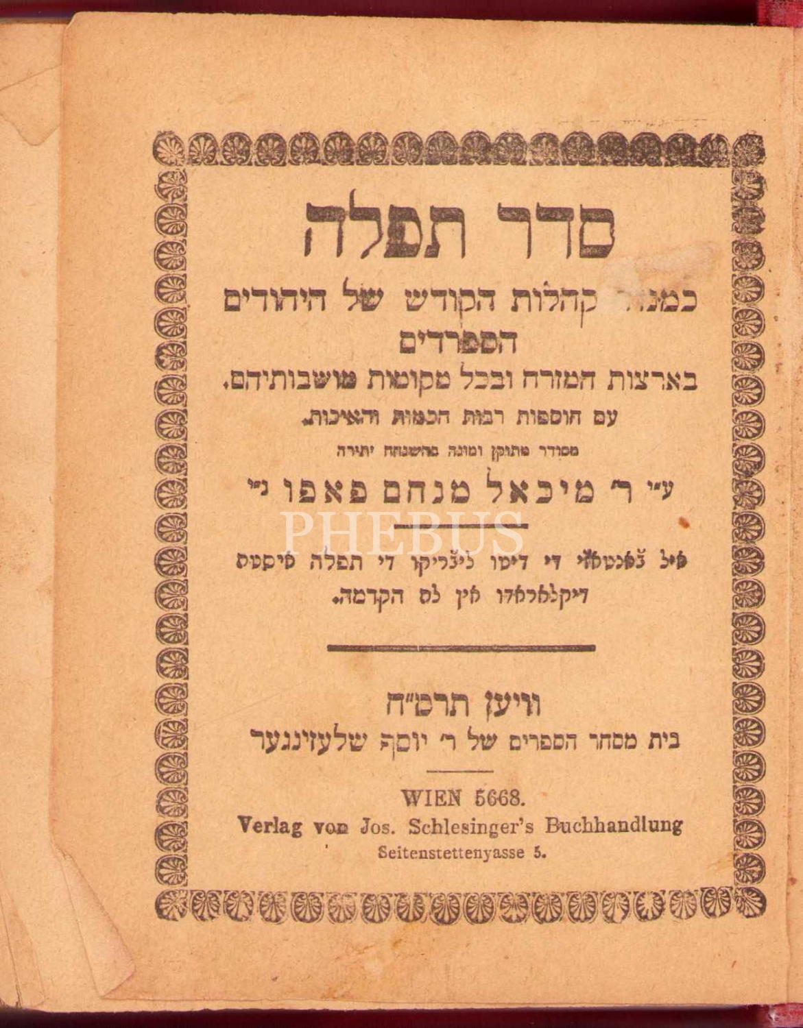 Viyana baskı İbranice kitap, 499 s., 11x13 cm