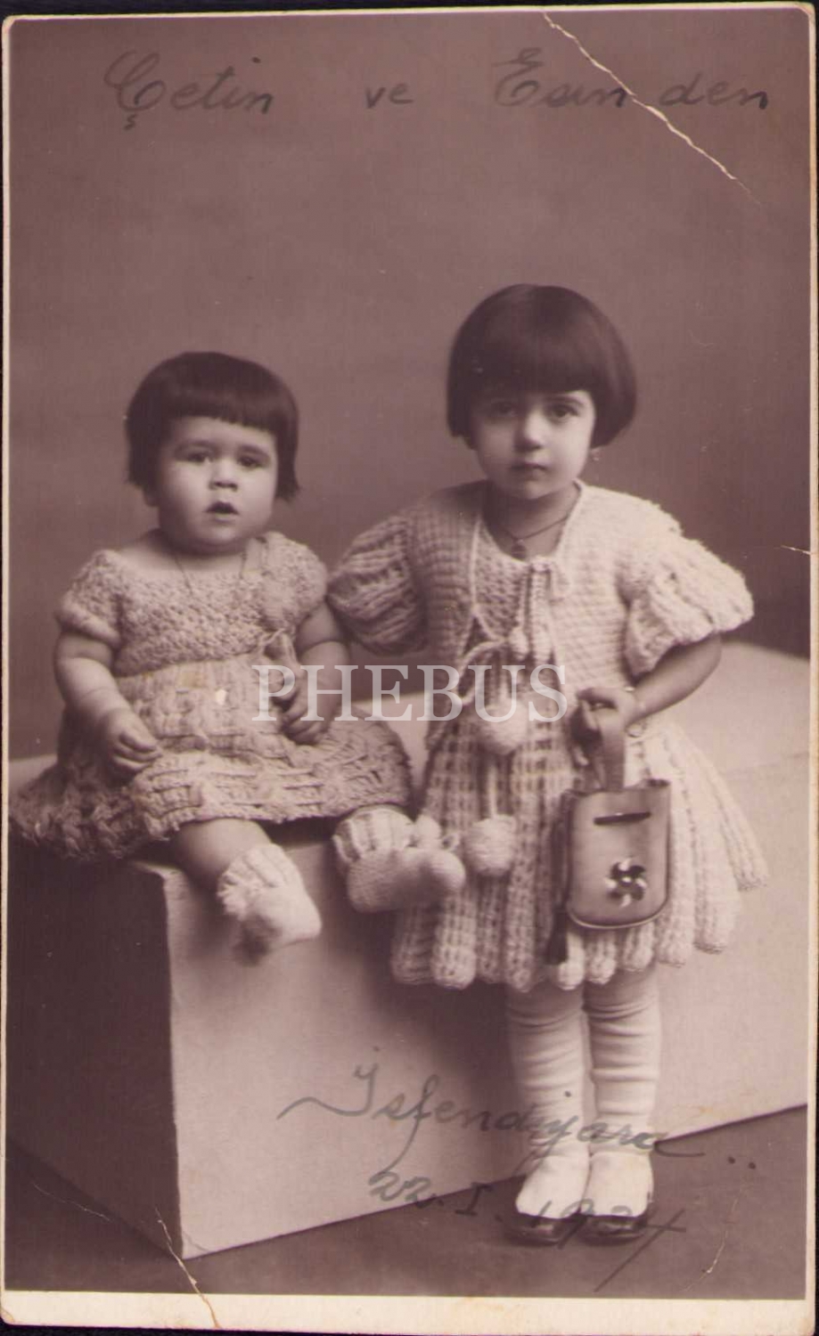 Soğuk damgalı iki kız çocuğu fotoğrafı, İsfendiyar 1934, bir köşesi kırık haliyle