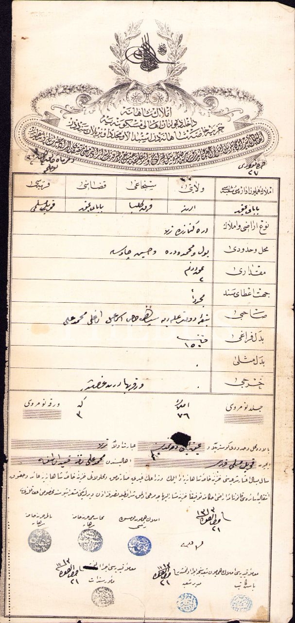 Osmanlıca tarla tapu senedi, Edirne 1313, 18x38 cm, delikler ve kenarda yırtıklar mevcut haliyle