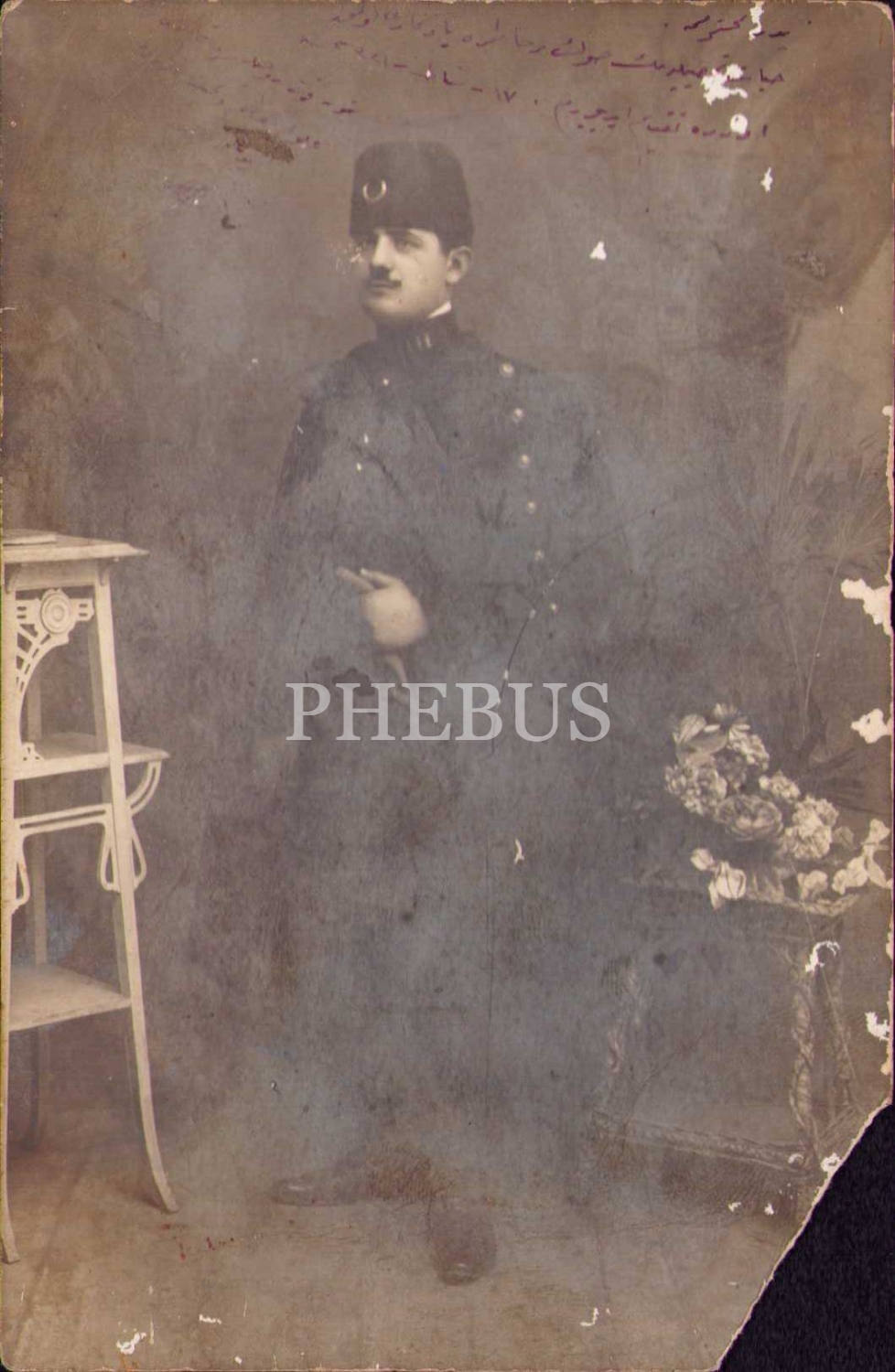 Osmanlıca ithaflı şahıs hatıra fotoğrafı, 1321, yorgun ve alt köşesi yırtık haliyle