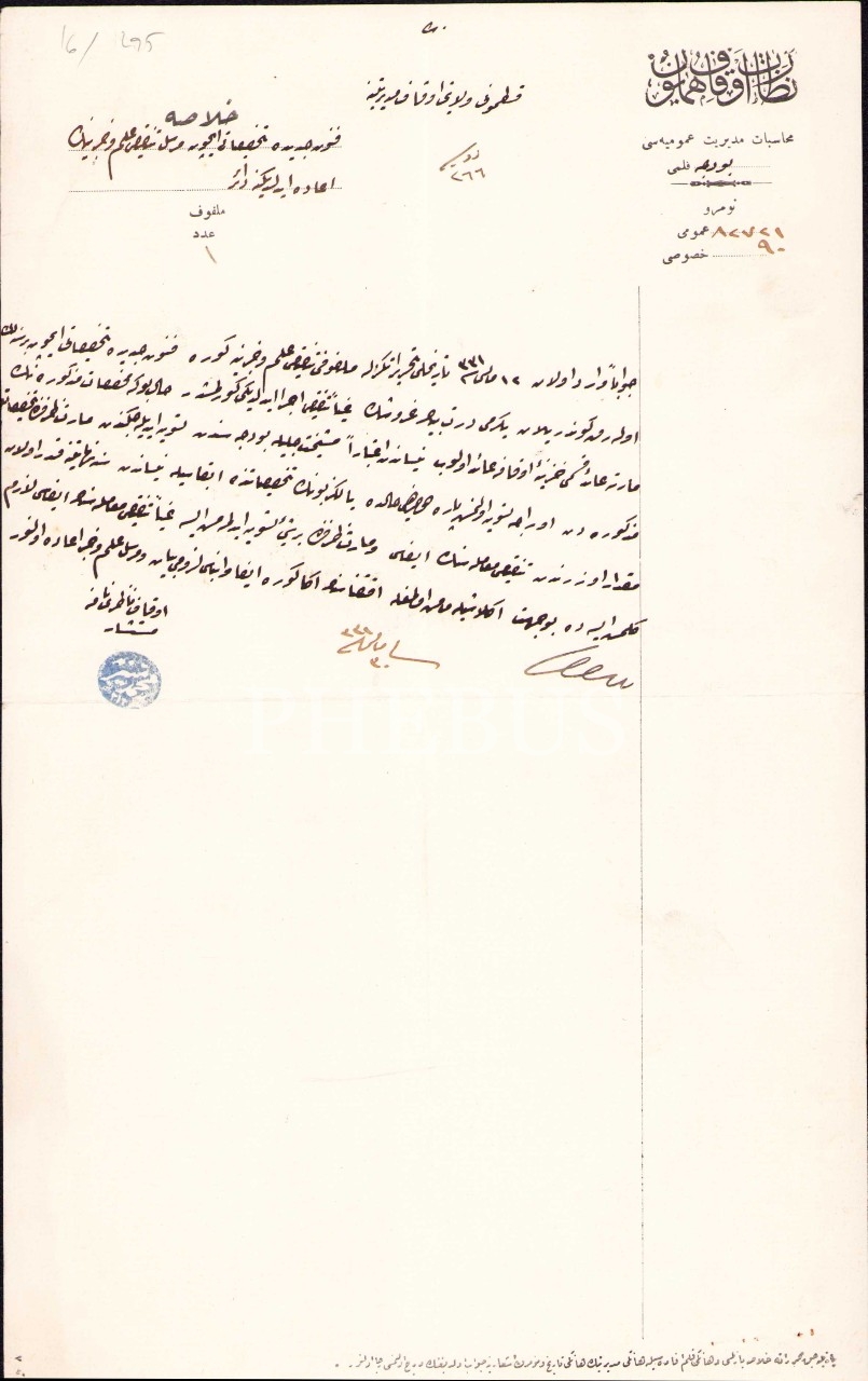 Osmanlıca Nezaret-i Evkaf-ı Hümayun antetli, Kastamonu Evkaf Müdürlüğü'ne hitaben yazılan mektup, 1331 tarihli, 20x32 cm