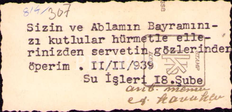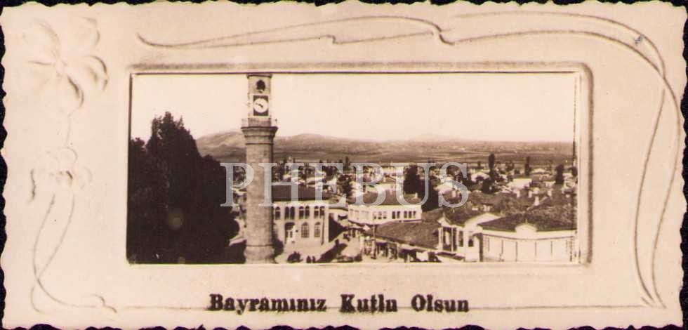 Saat kulesi görselli bayram tebrik kartı, 1939 tarihli, 4x8 cm