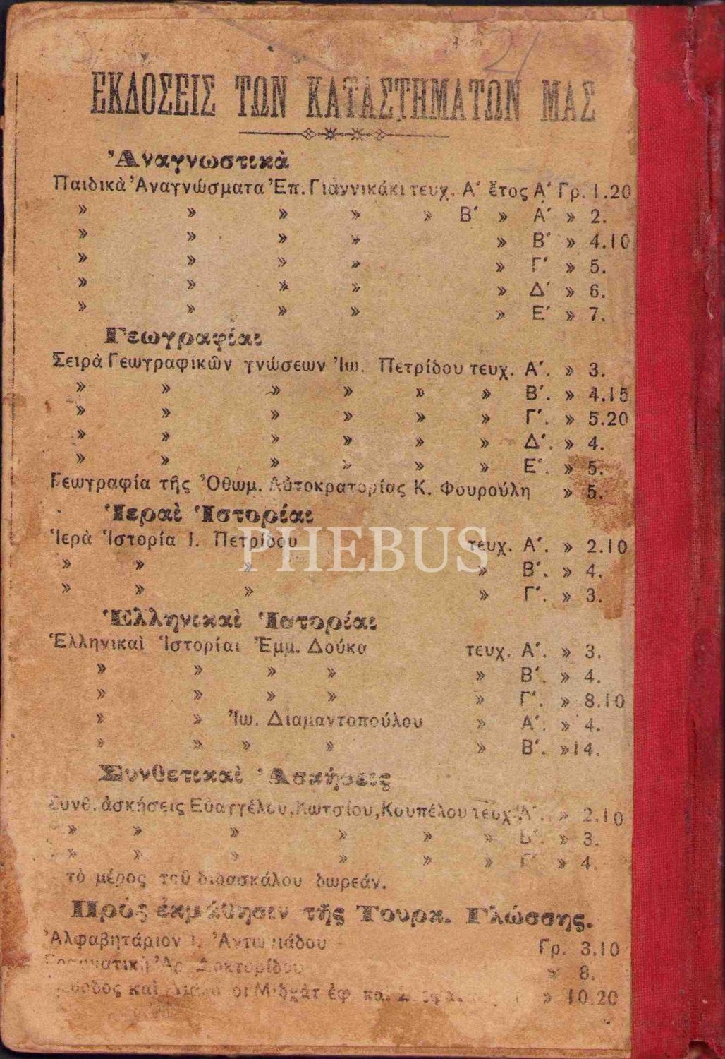 Yirminci yüzyılın ilk yıllarında İzmir'de basılmış kıraat kitabı, Rumca öğretmeye yönelik hazırlanmıştır. İçerisinde talebeler için okuma metinleri yer almaktadır.