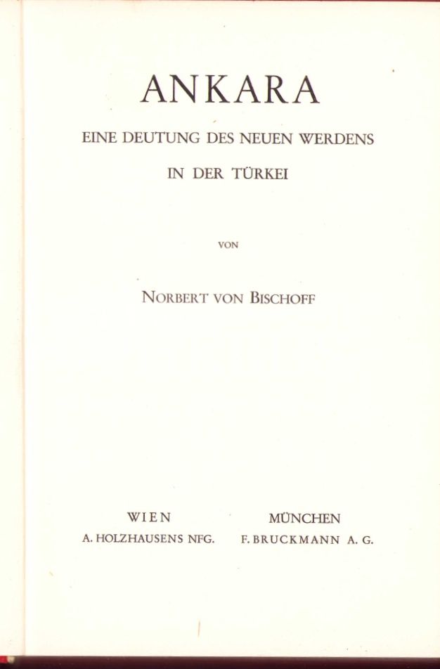 Avusturya Büyükelçisi Norbert von Bischoff'un Kaleminden 1930'ların Ankara'sı: Ankara Eine Deutung Des Neuen Werdens In Der Turkei [Türkiye'deki Yeni Oluşumun Bir İzahı], Almanca, 1935, Viyana, 226 sayfa, 15x26 cm