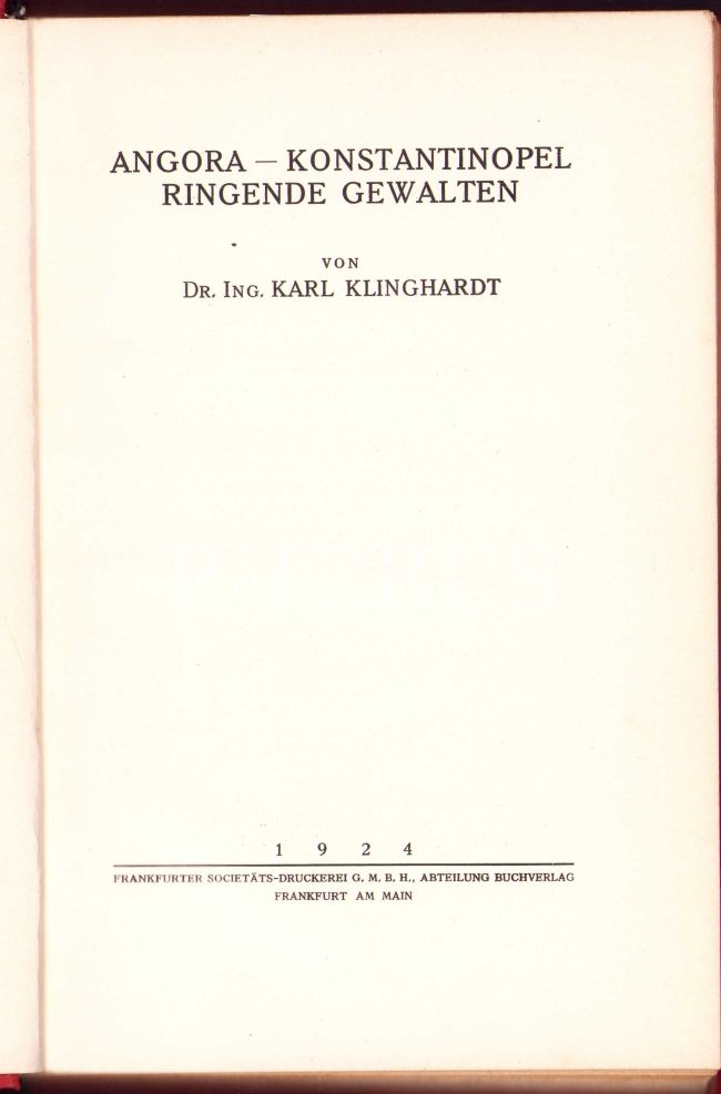 Alman Araştırmacı Karl Klinghardt'ın Gözünden Ankara-İstanbul Çekişmesi: Angora-Konstantinopel Ringende Gewalten, 1924, Frankfurt, orijinal bez cildinde, Almanca, 265 sayfa, 15x23 cm