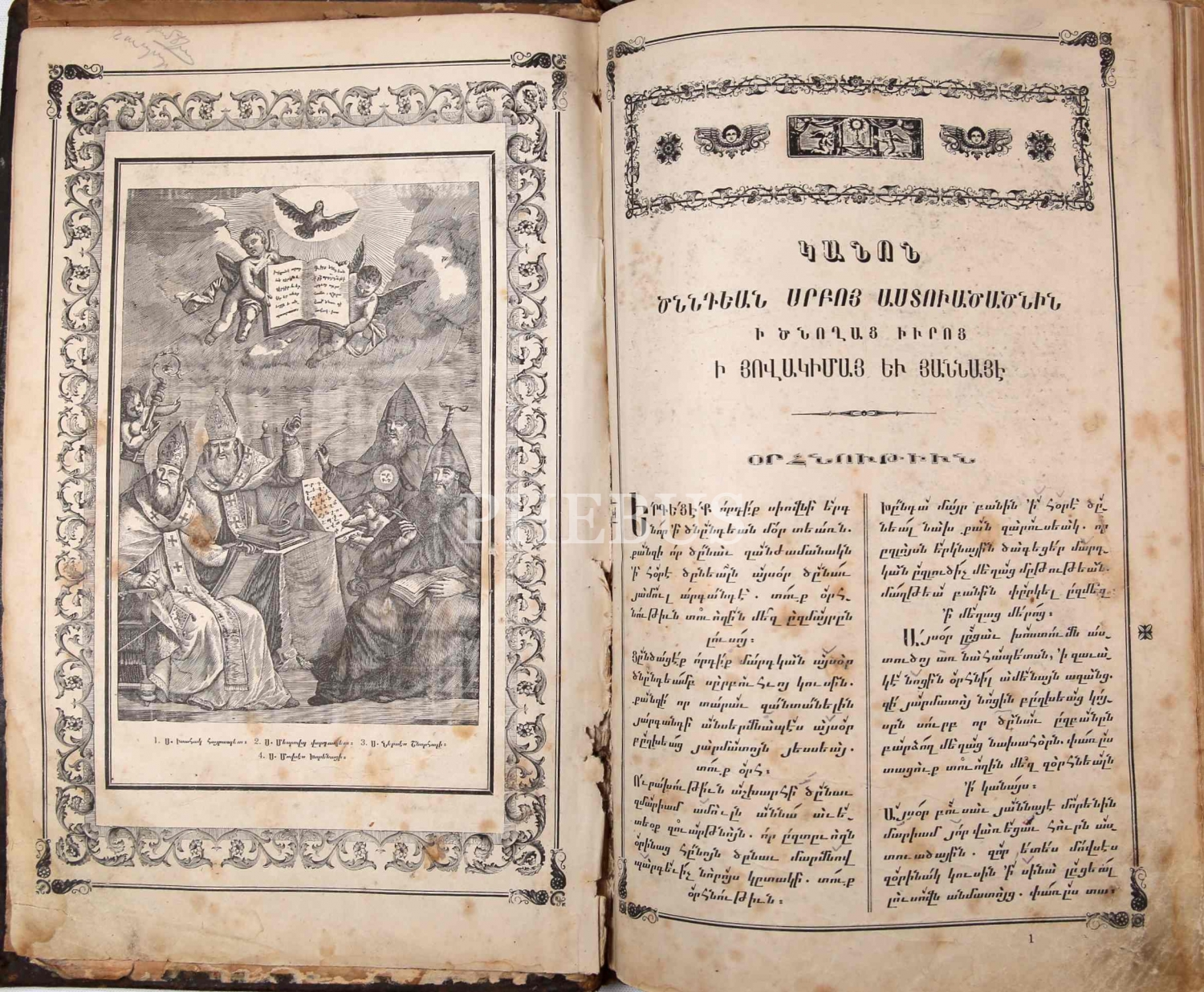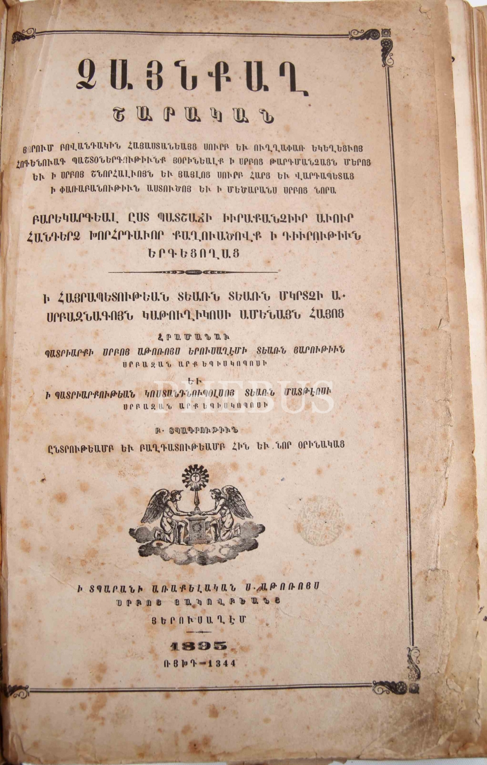 Ermenice Tsaynakağ Şaragan [Tsaynakağ Teganniyat-ı Ruhaniye], 1895, Kudüs [Jerusalem], Surp Hagop Matbaası, cildi dağınık bir vaziyette, deri cildinde, 506 sayfa, 23x36 cm