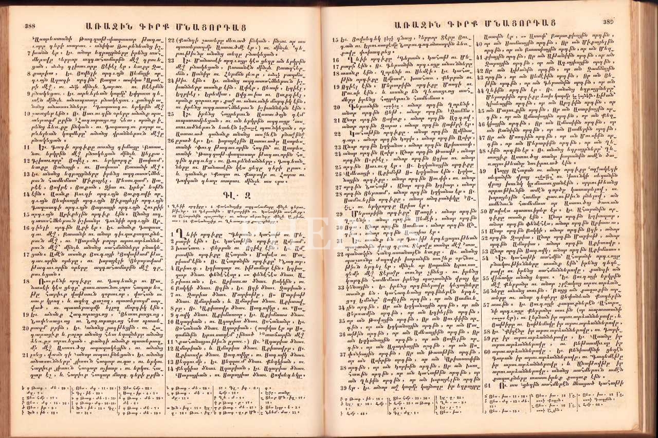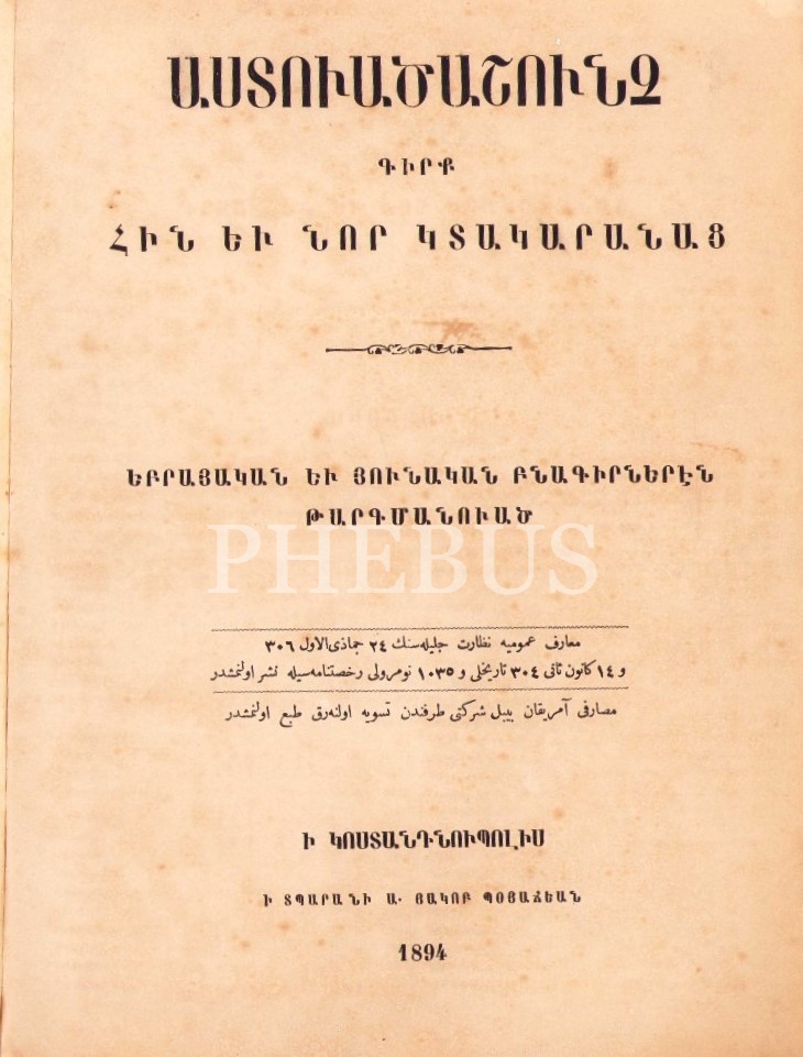 Ermenice Kitab-ı Mukaddes Yeni Ve Eski Ahit: Asdvadzaşunç Kirk Hin Yev Nor Gıdagaran, Gosdantnubolis [İstanbul],A. Hagop Boyacıyan Matbaası, 1169 sayfa, 20x28 cm