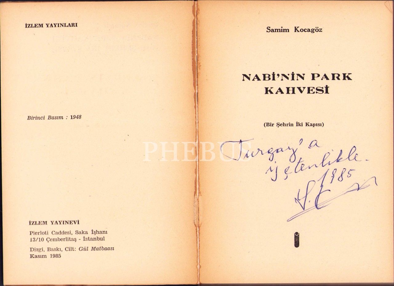 Samim Kocagöz'den İmzalı ve İthaflı "Nabi'nin Park Kahvesi", İlk Baskı, 1948, İzlem Yayınevi, 223 sayfa