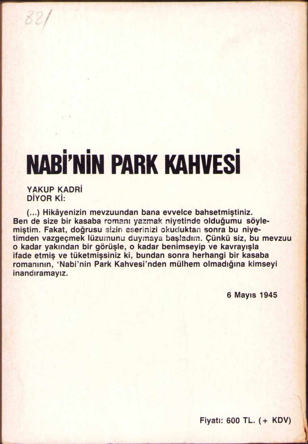 İthaf "Turgay'a içtenlikle 1985" şeklindedir.
