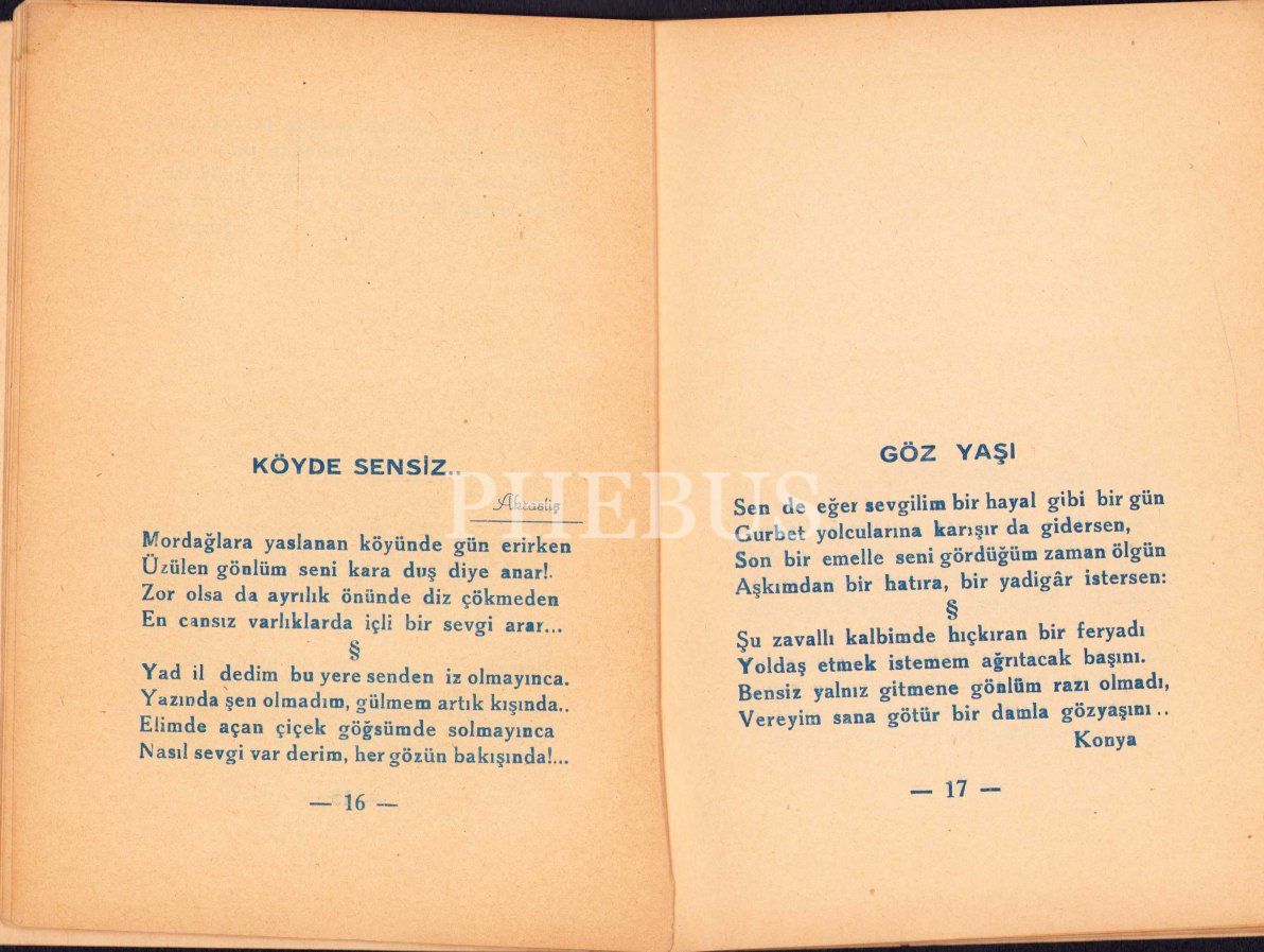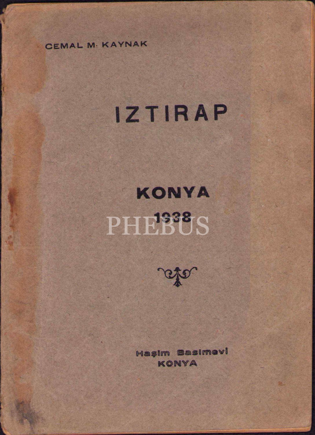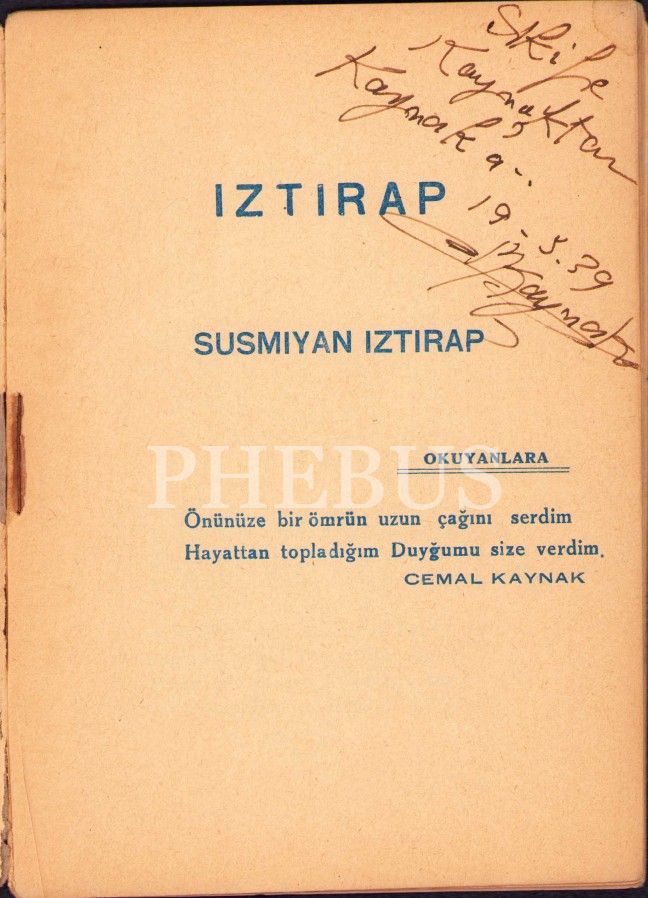 Cemal M. Kaynak'dan İmzalı ve İthaflı "Iztırap", Konya Haşim Basımevi,1938, cildi yorgun haliyle