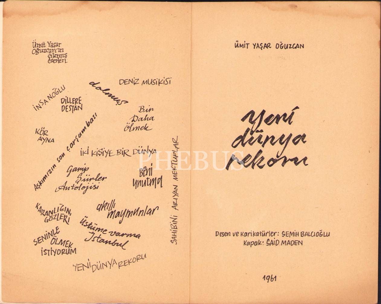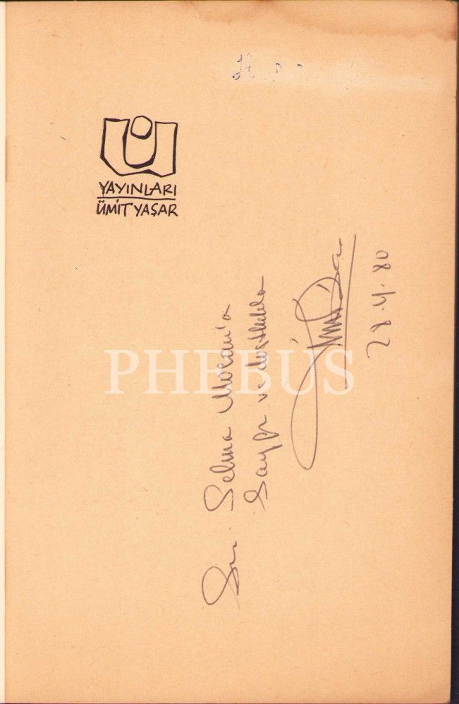 Ümit Yaşar Oğuzcan'dan İmzalı ve İthaflı, Yeni Dünya Rekoru -şiirler-, İlk Baskı, 1961, kitap su almış vaziyettedir