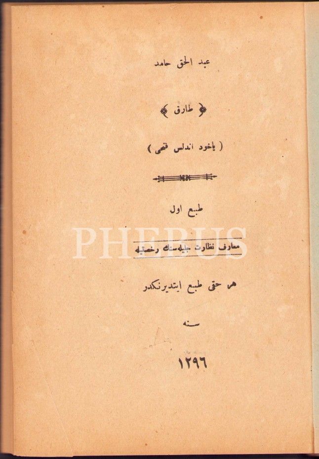 Osmanlıca Tarık, Abdülhak Hamid, Birinci Baskı, 1296, 173 sayfa, 14x19 cm, ÖZEGE; 19732