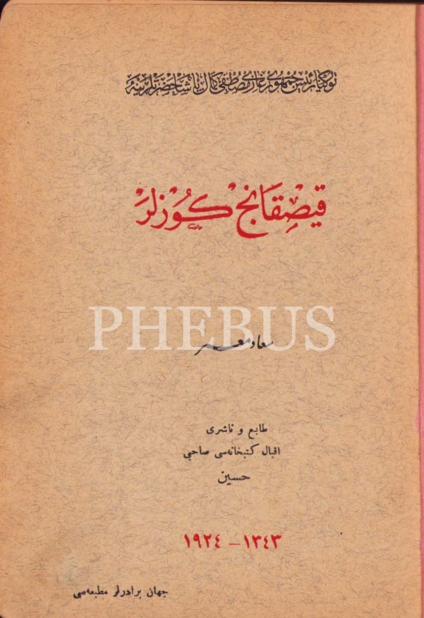 Osmanlıca Kıskanç Gözler, Suad Muhammer, Cihan Biraderler Matbaası, 1924, 254 sayfa, 14x20 cm, ÖZEGE; 10728, içerisindeki bir sayfa kenardan kopuktur