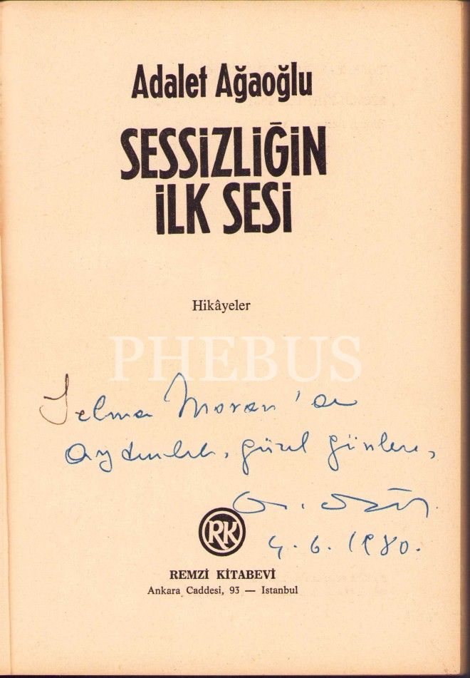 Adalet Ağaoğlu'ndan İmzalı ve İthaflı "Sessizliğin İlk Sesi", İlk Baskı, 1978, ön ve arka kapak yorgun
