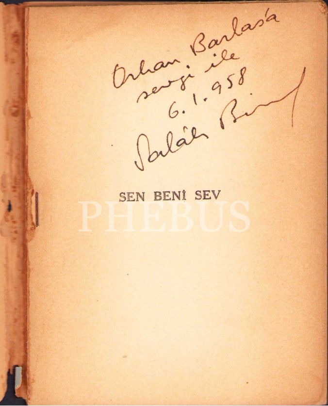 İthaf "Orhan Barlas'a sevgi ile 6.1.958 Salah Birsel" şeklindedir.