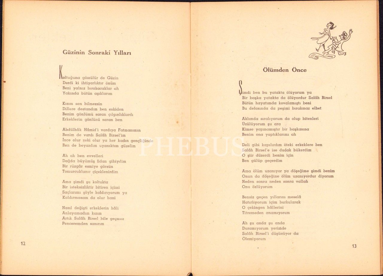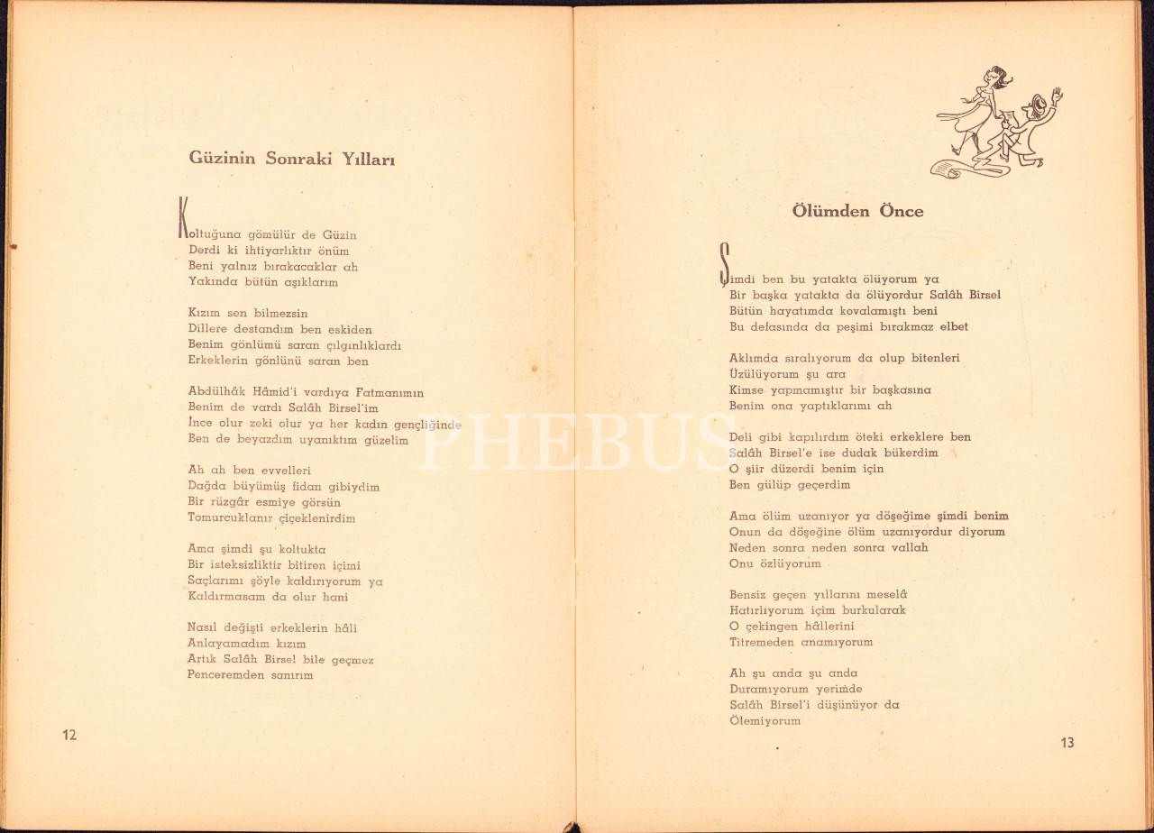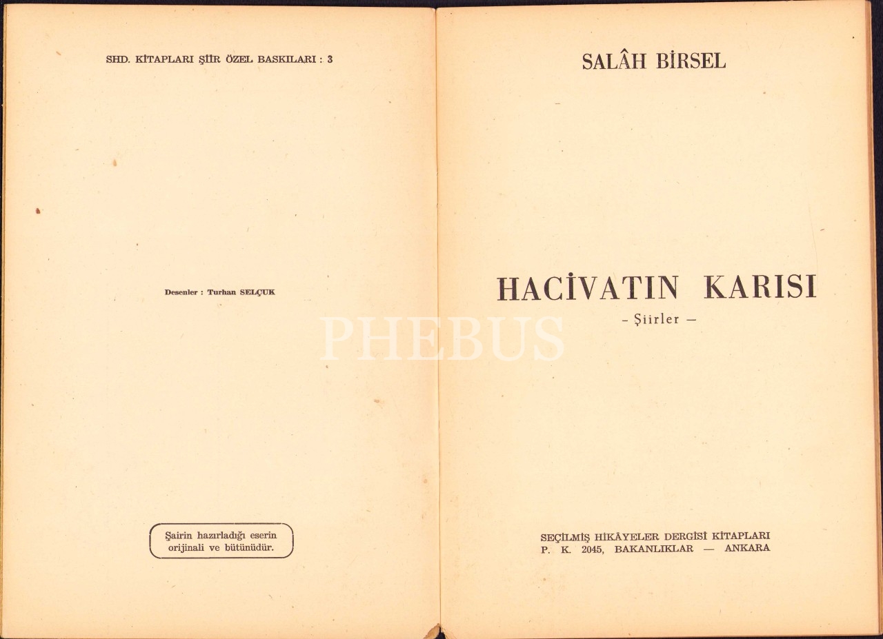 Salah Birsel'den İmzalı ve İthaflı "Hacivatın Karısı" -şiirler-, İlk Baskı, 1955, kitabın sağ alt köşesi kıvrık haliyle