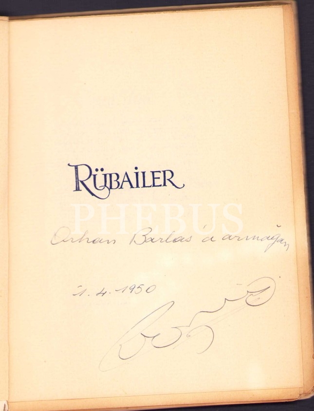 Cemal Yeşil'den İmzalı ve İthaflı "Rübailer", İlk Baskı, 1950, kitabın kapağı haliyle