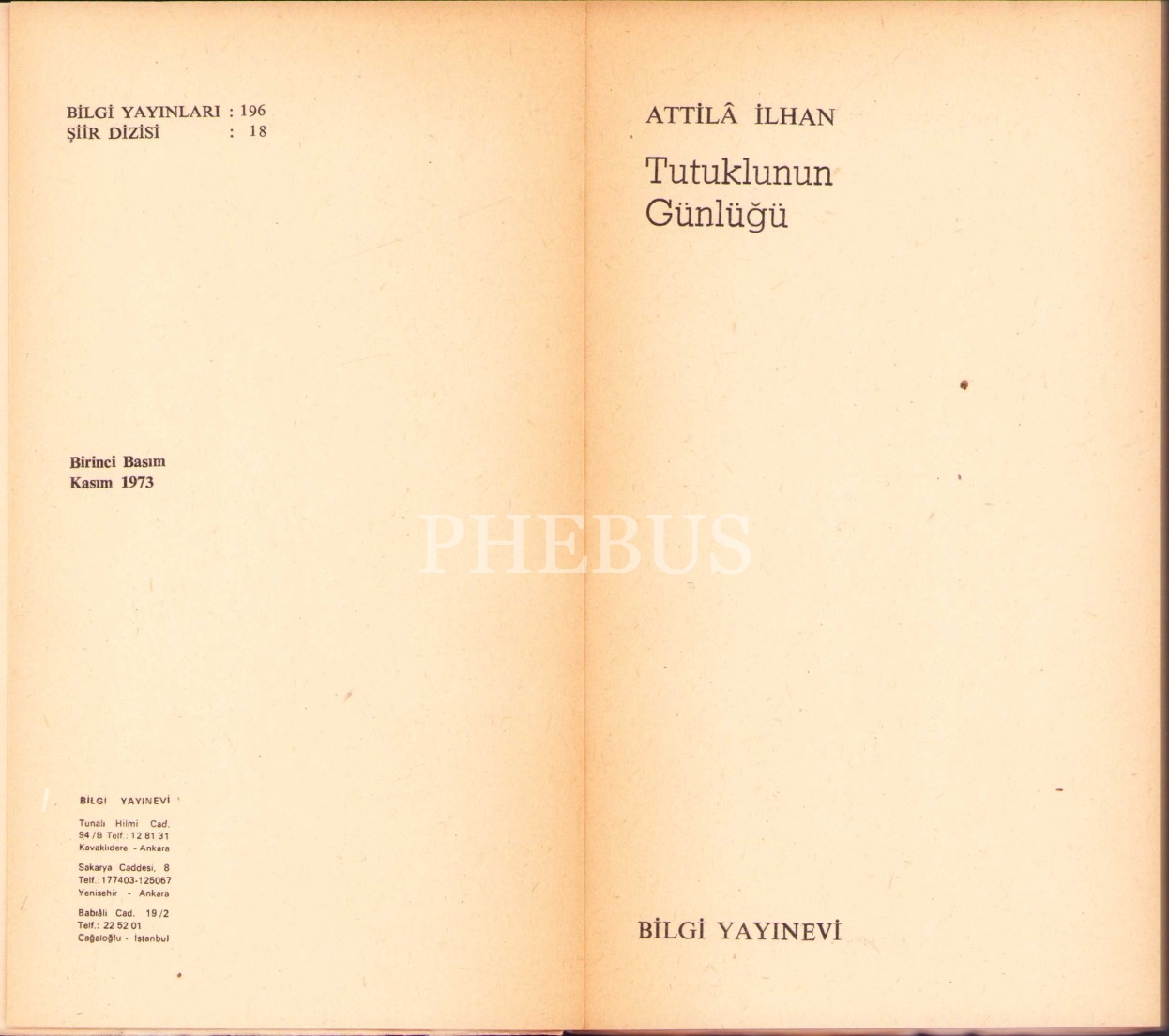 Tutuklunun Günlüğü -şiirler-, Attila İlhan, İlk Baskı, 1973