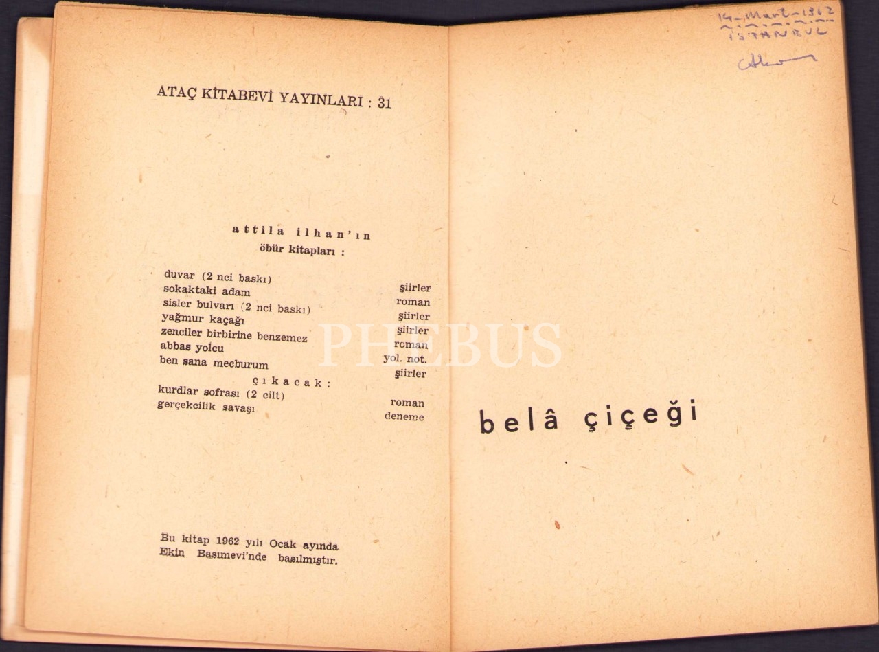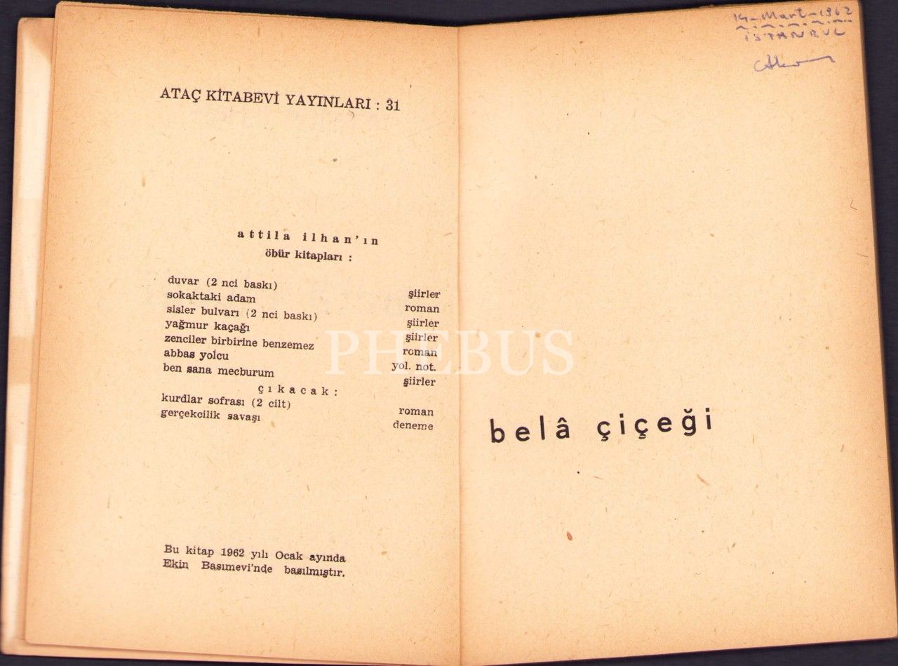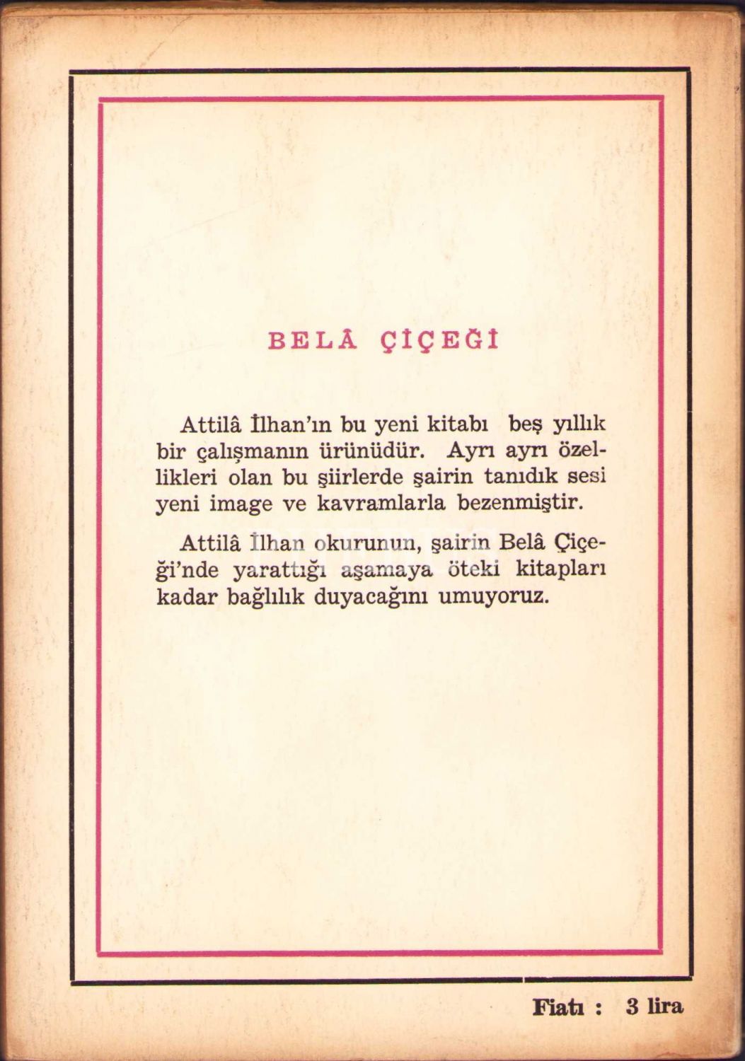 Bela Çiçeği -şiirler-, Attila İlhan, İlk Baskı, 1962, yorgun vaziyette