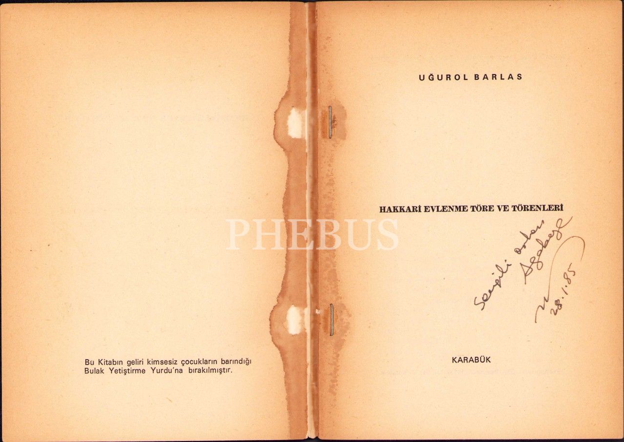 Uğurol Barlas'tan İmzalı ve İthaflı "Hakkari İli Evlenme Töre ve Törenleri", 1975, ön kapak kıvrık vaziyette, sırtı haliyle