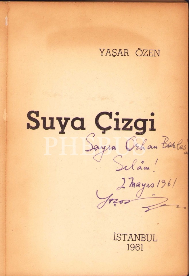 Yaşar Özen'den İmzalı ve İthaflı "Suya Çizgi" -şiirler-, 1961