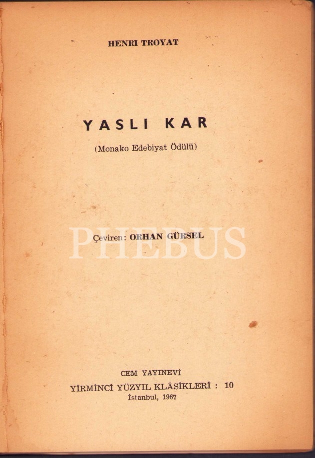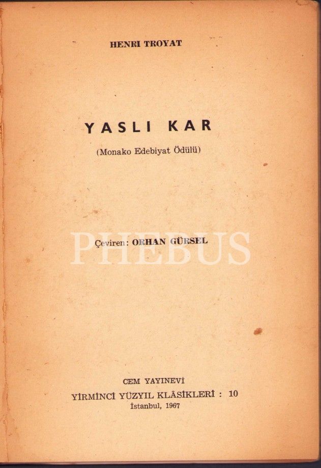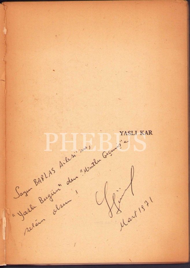 Yaslı Kar, Troya, Tercüman Orhan Gürsel'den İmzalı ve İthaflı, İlk Baskı, 1967, ön kapak kırık vaziyettedir