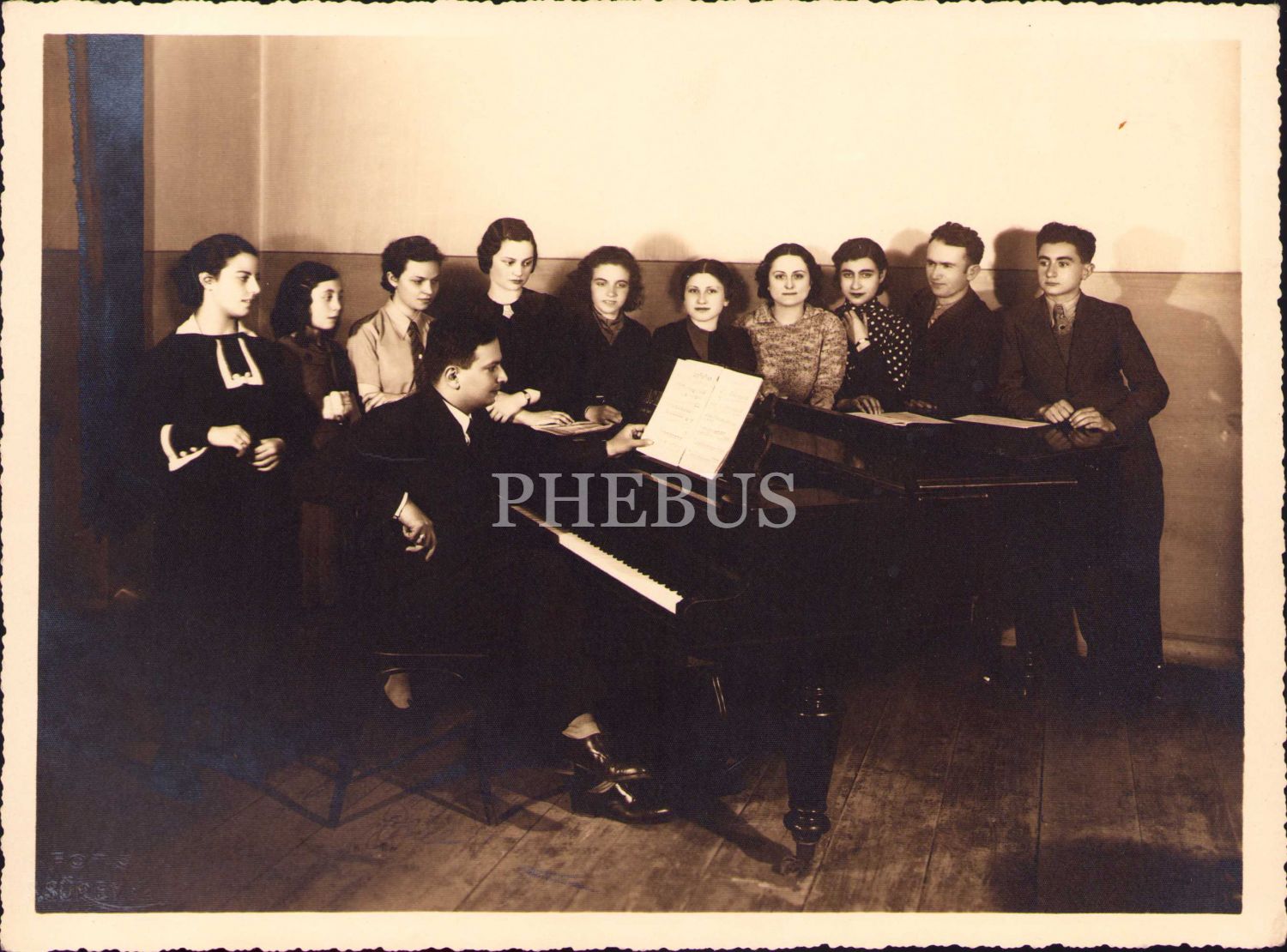 Piyano başında hatıra fotoğrafı, Foto Süreyya İstanbul soğuk damgalı, 17x22 cm, üst köşeleri bükülmüş haliyle