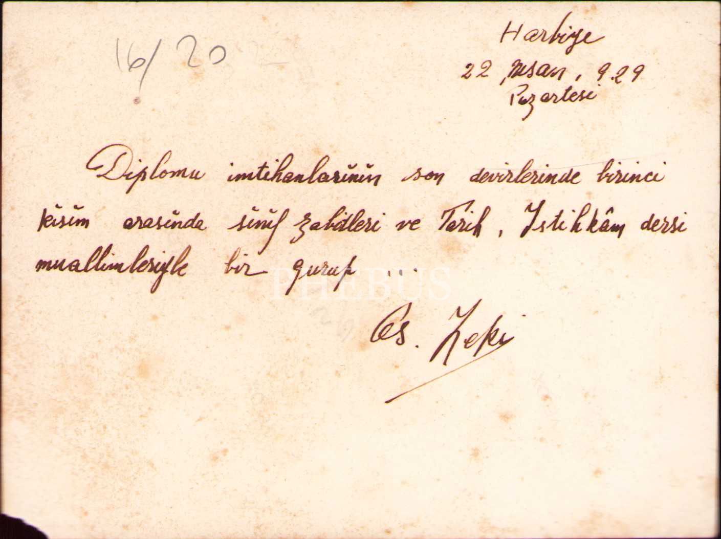 Harbiye Mektebi hatıra fotoğrafı, 1929, arkası yazılı, alt köşesi yırtık haliyle