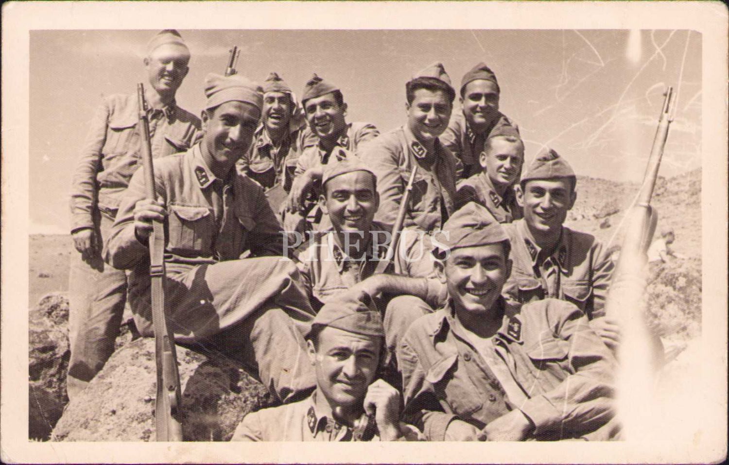 Arkası yazılı askerler hatıra fotoğrafı, yorgun haliyle
