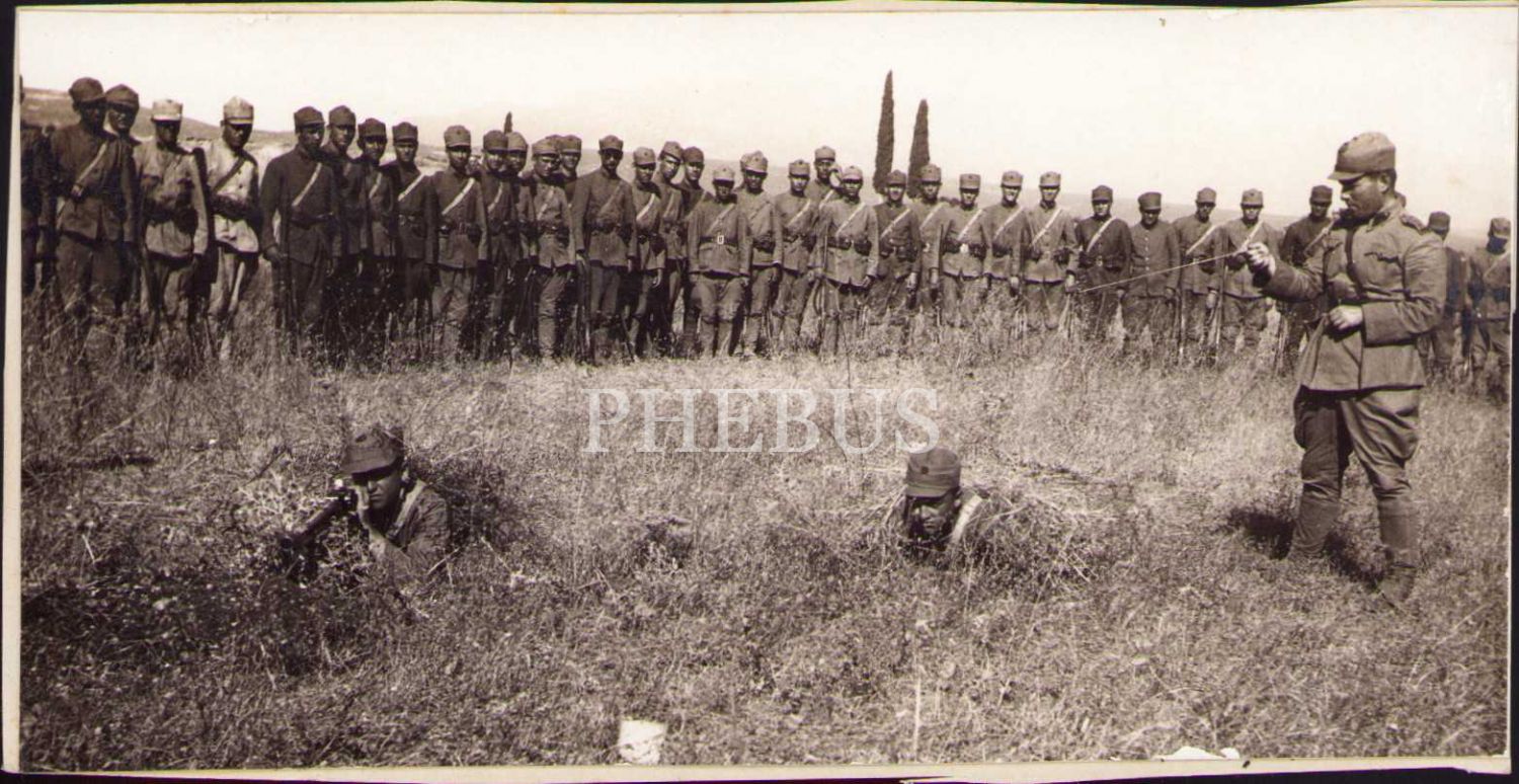 Askerî talim fotoğrafı, 7x13 cm, kesik ve kartona yapışık haliyle