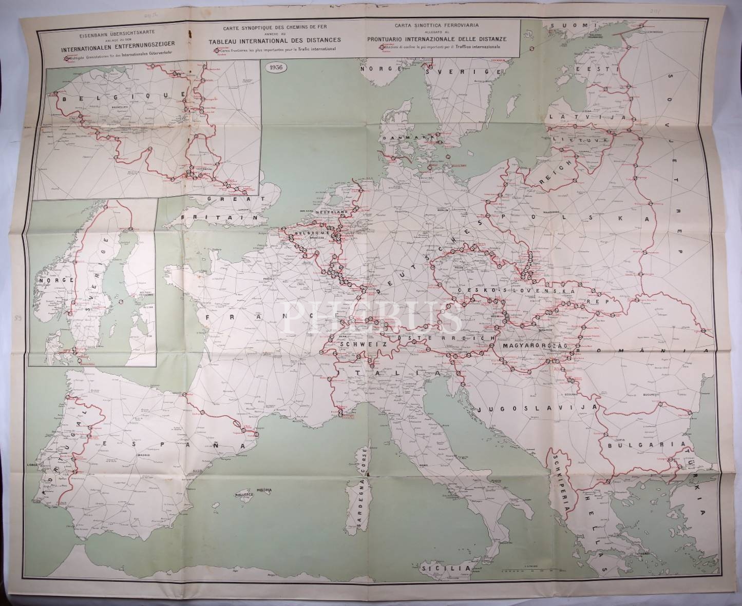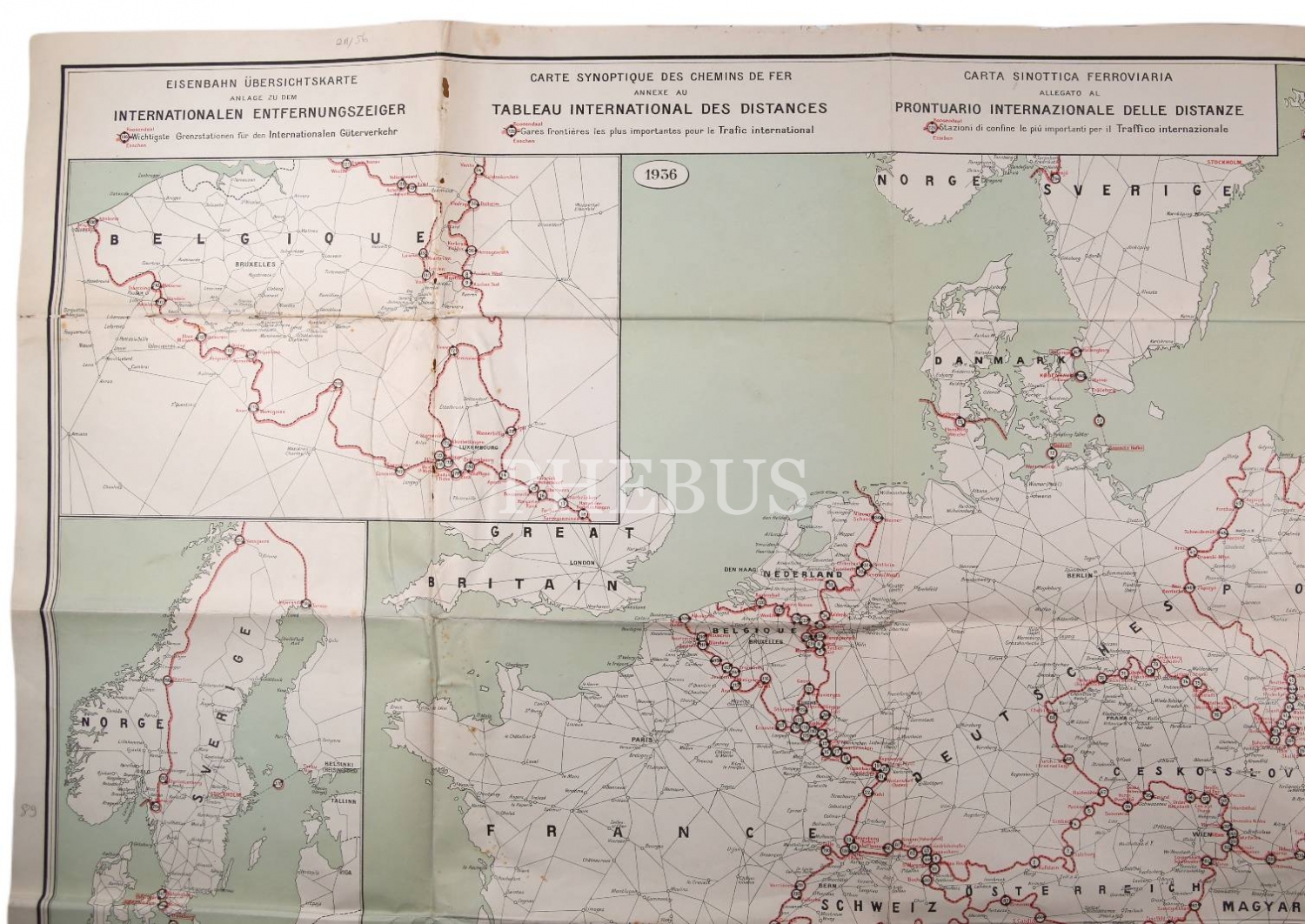 Almanca-Fransızca-İtalyanca Avrupa demiryolu haritası, 81x96 cm