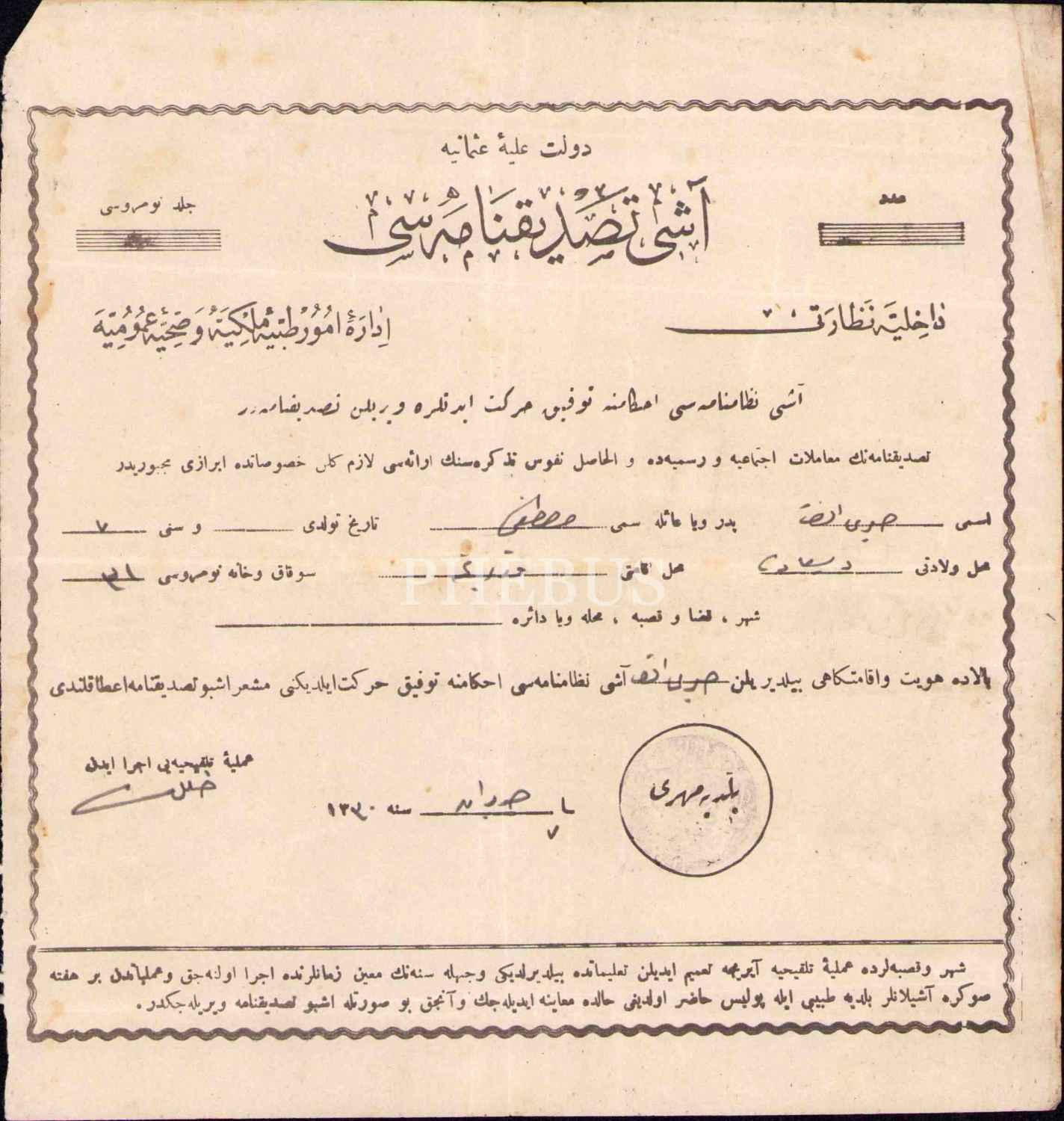 Osmanlıca aşı tasdiknamesi, 1330 tarihli, 19x20 cm