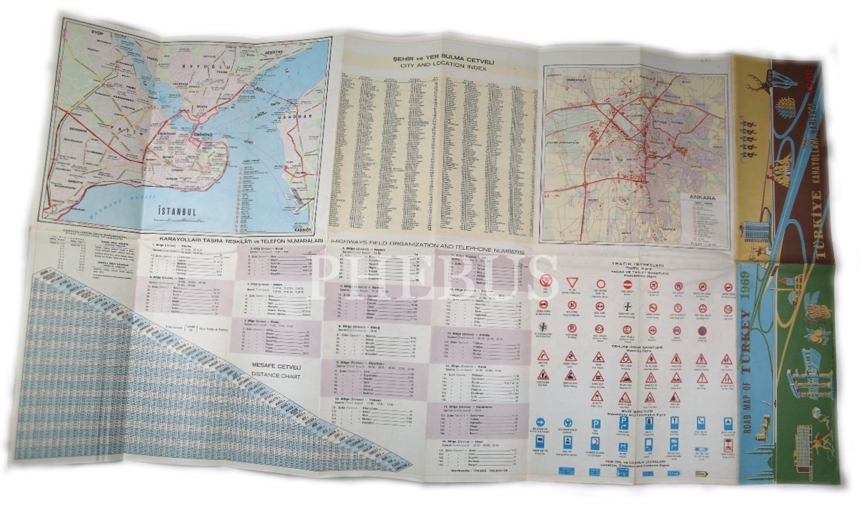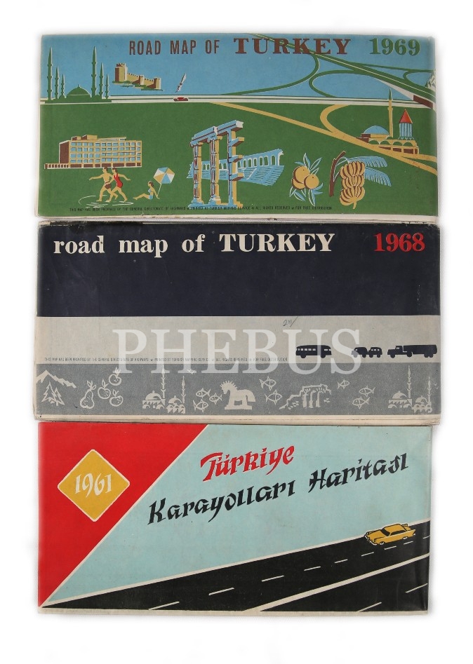 3 adet Türkiye Karayolları Haritası, 1961, 1968 ve 1969 yıllarına ait, 47x67 cm, 49x93 cm ve 49x92 cm