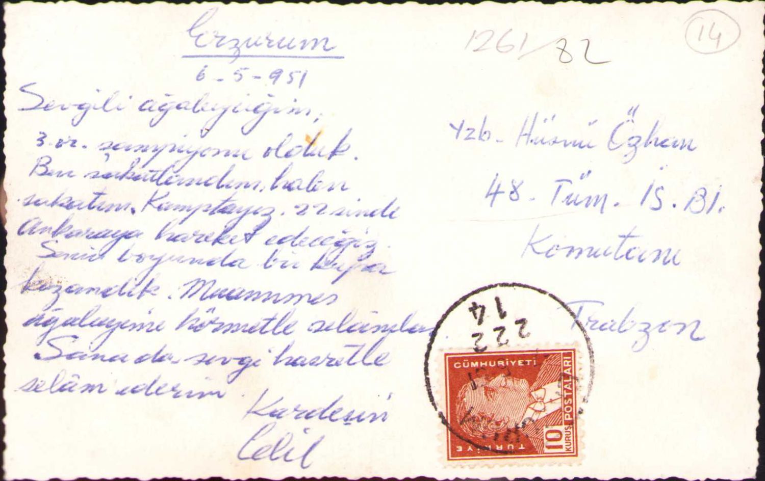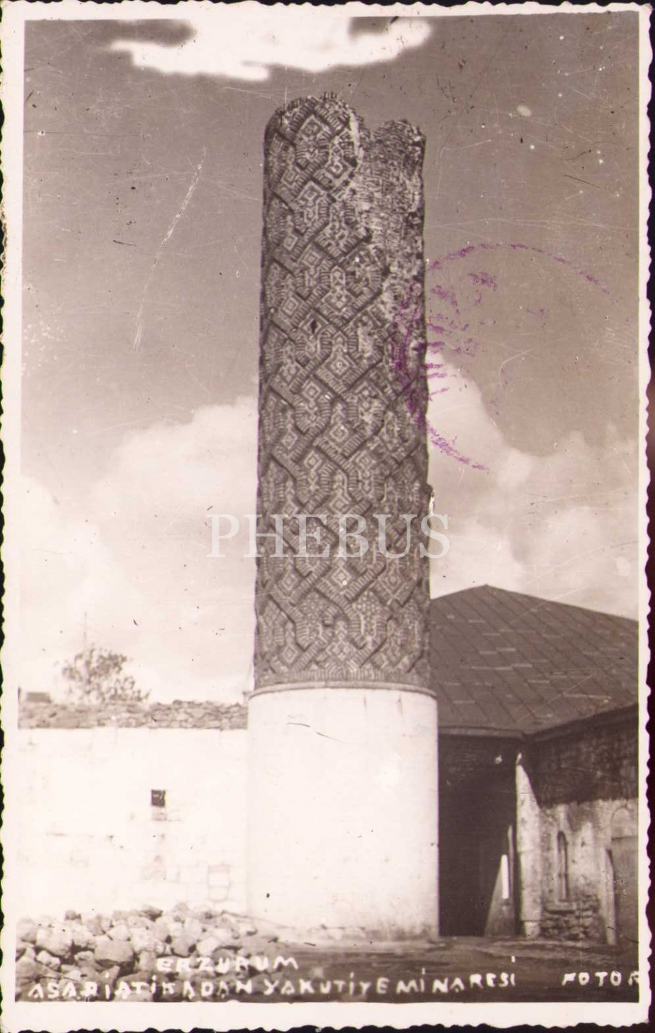 Erzurum Yakutiye Minaresi, 1951, arkası yazılı