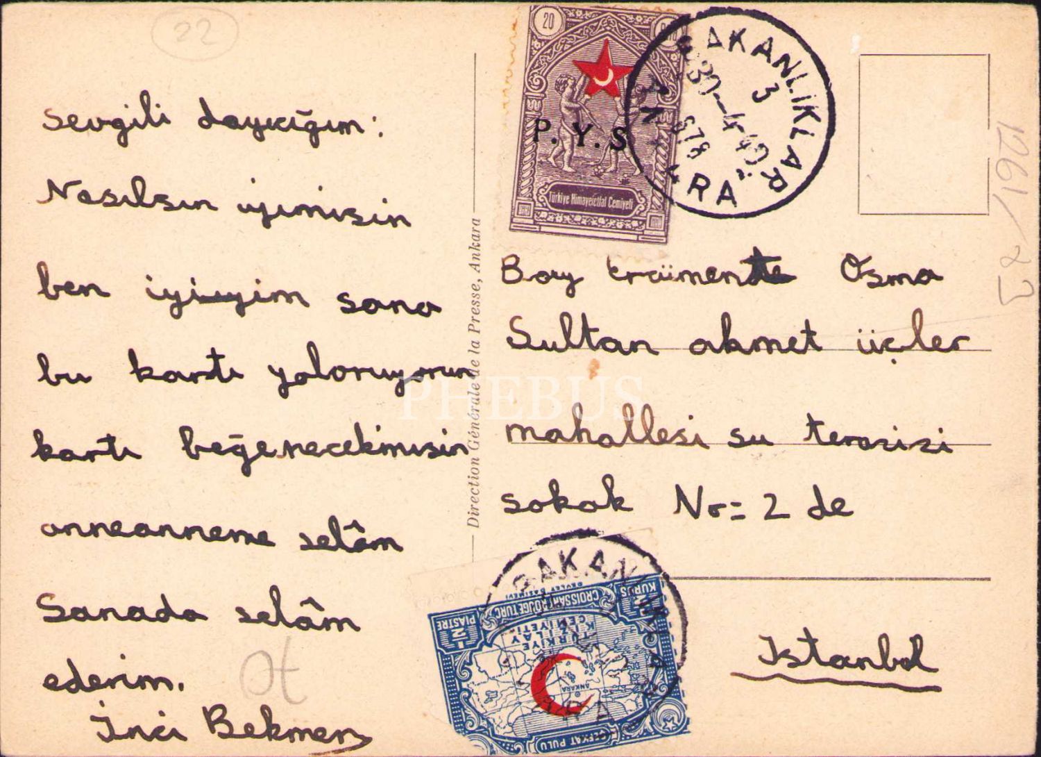 Hatay Daphne (Harbiye) Şelalesi, arkası yazılı ve pullu