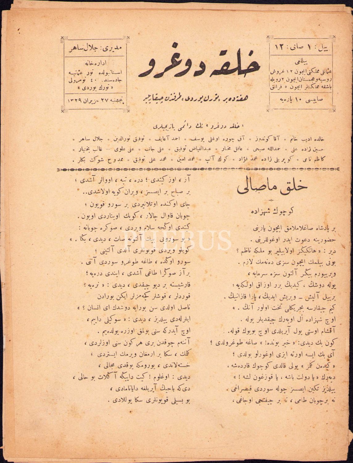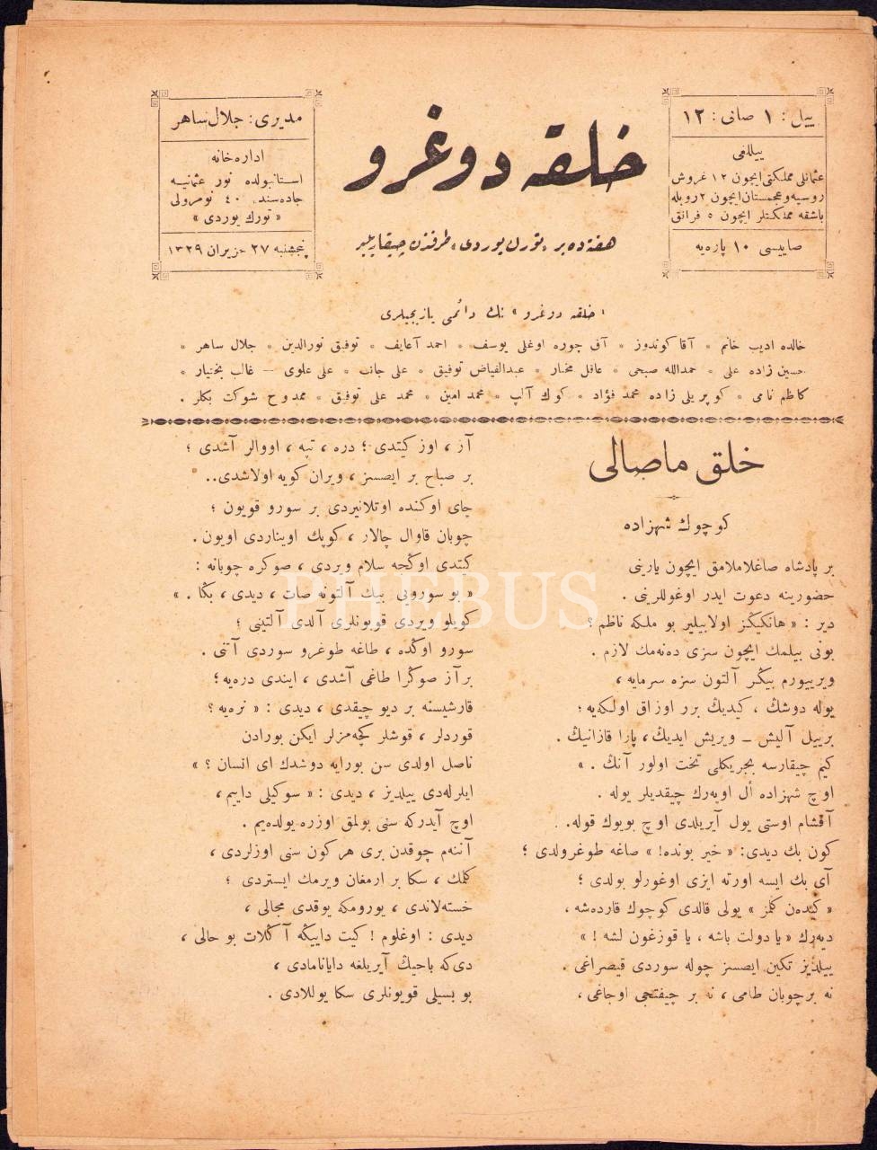 Osmanlıca Halka Doğru dergisi 12 ve 20. sayı, 27 Haziran 1329-22 Ağustos 1329, 20x27 cm, 20. sayısı epey yıpranmış haliyle