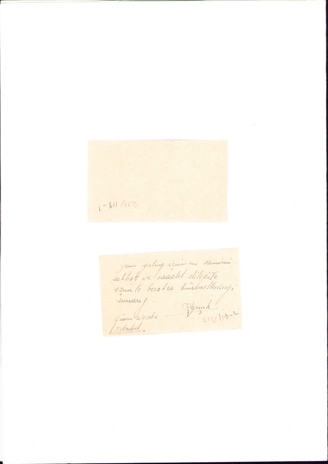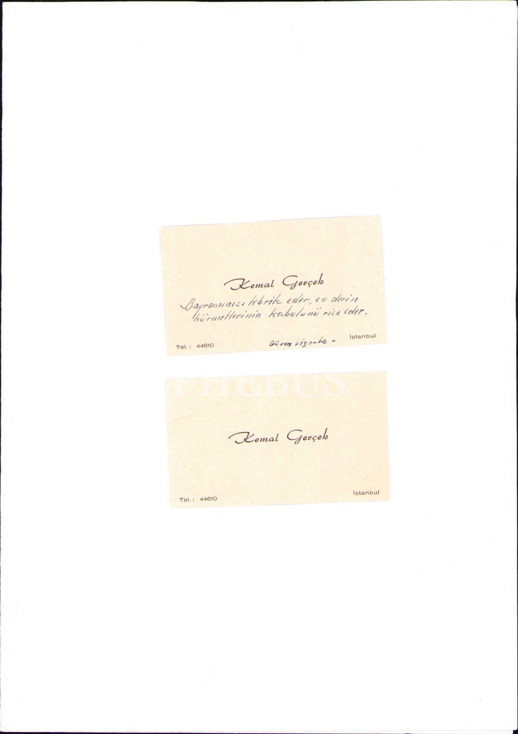 2 adet Kemal Gerçek kartviziti üzerinde bayram ve yeni yıl tebriği