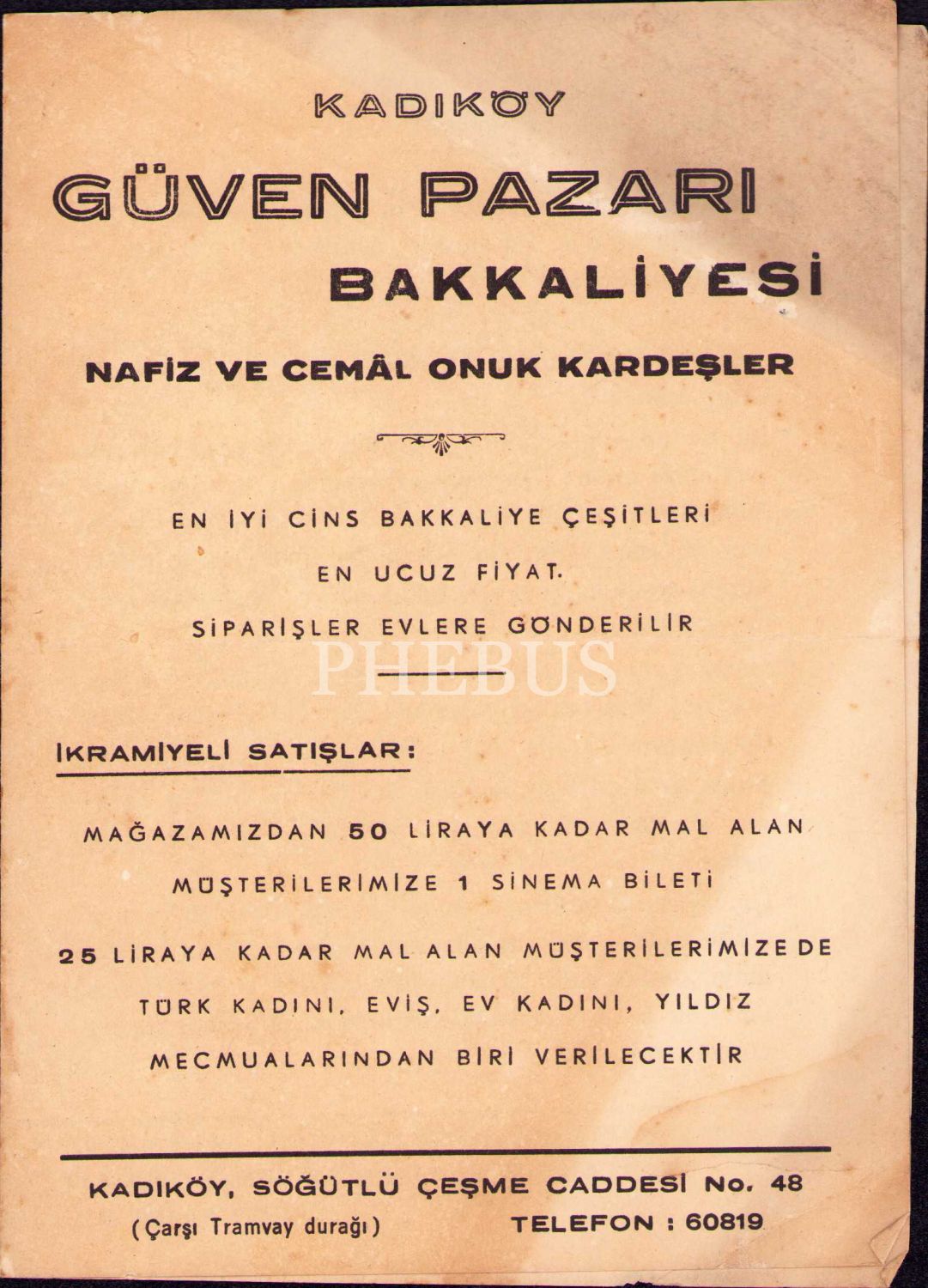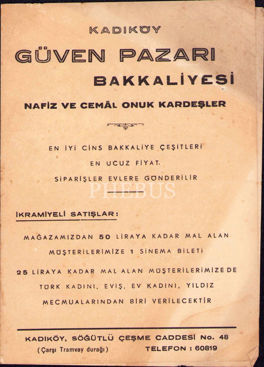 Kadıköy Güven Pazarı Bakkaliyesi tanıtım sayfası, 18x25 cm