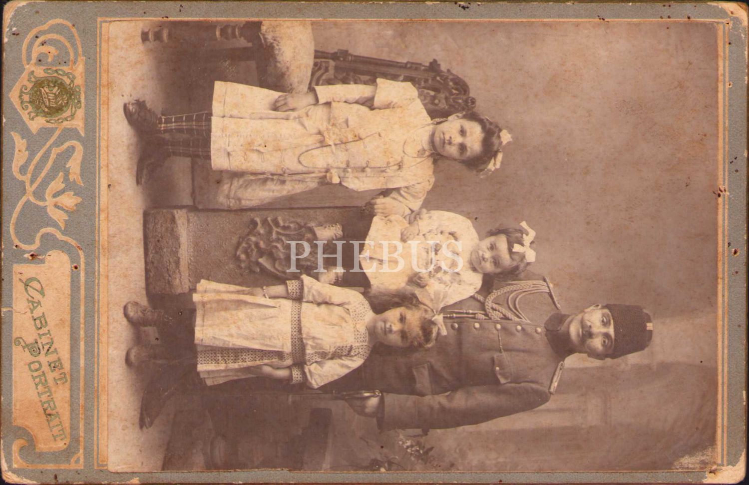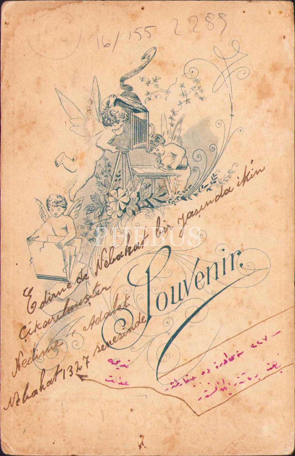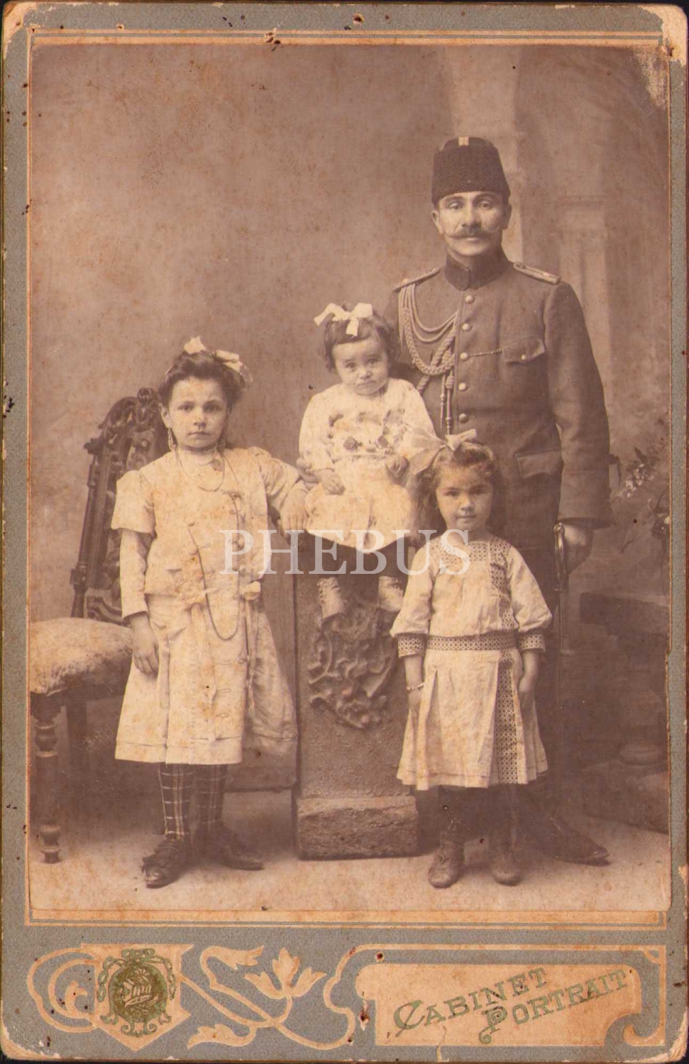 Subay ve ailesinin hatıra fotoğrafı, Edirne 1327, 10x13 cm, paspartusu yıpranmış haliyle