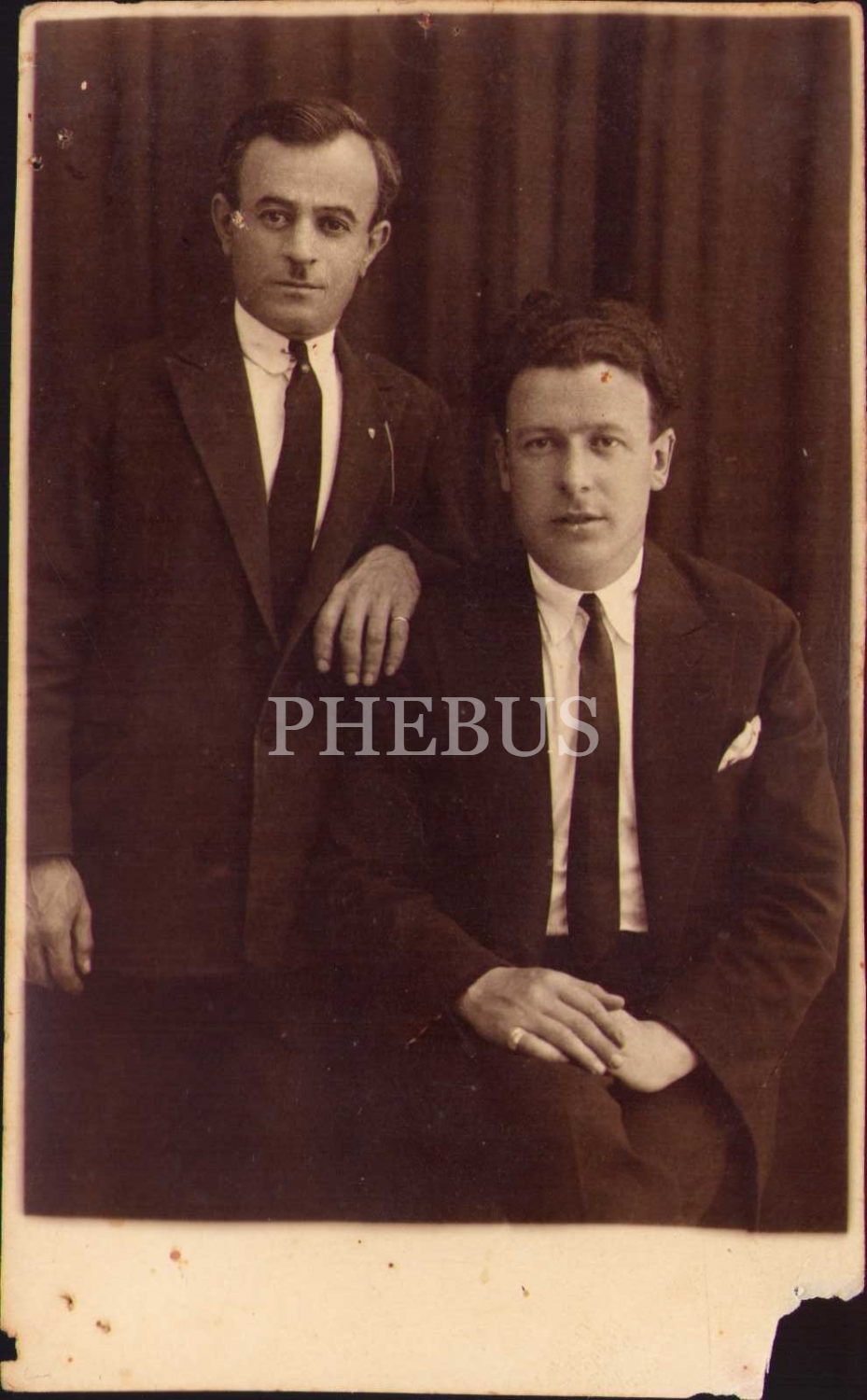Saatçı Faik Mahtumları damgalı hatıra 2 şahıs hatıra fotoğrafı, alt köşesi kopuk haliyle
