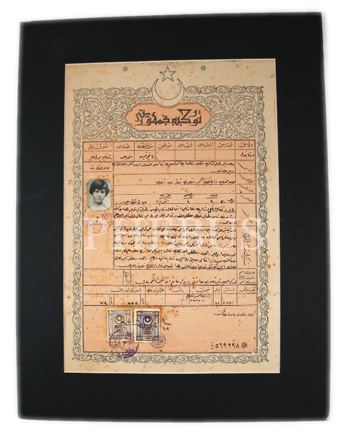 Osmanlıca Türkiye Cumhuriyeti antetli fotoğraflı tapu senedi, Harameyn-i Muhteremeyn ve Ayasofya-ı Kebir vakıflarından, İstanbul 1926, 22x32 cm