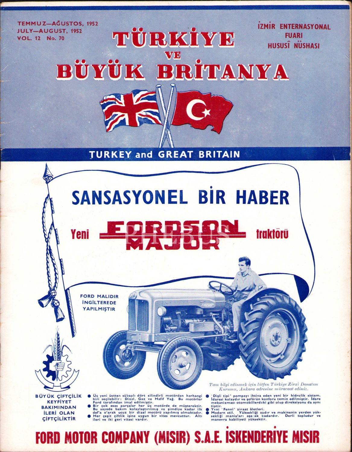 Türkiye ve Büyük Britanya dergisi, İzmir Enternasyonal Fuarı özel sayısı, Temmuz-Ağustos 1952, 22x28 cm