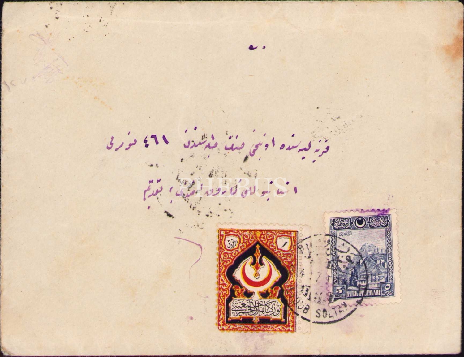 1927 tarihli Osmanlıca şahsi mektup ve zarfı, Konya Lisesi'nde okuyan İstanbullu bir öğrenciye hitaben, 13x19 cm, zarfı yorgun haliyle